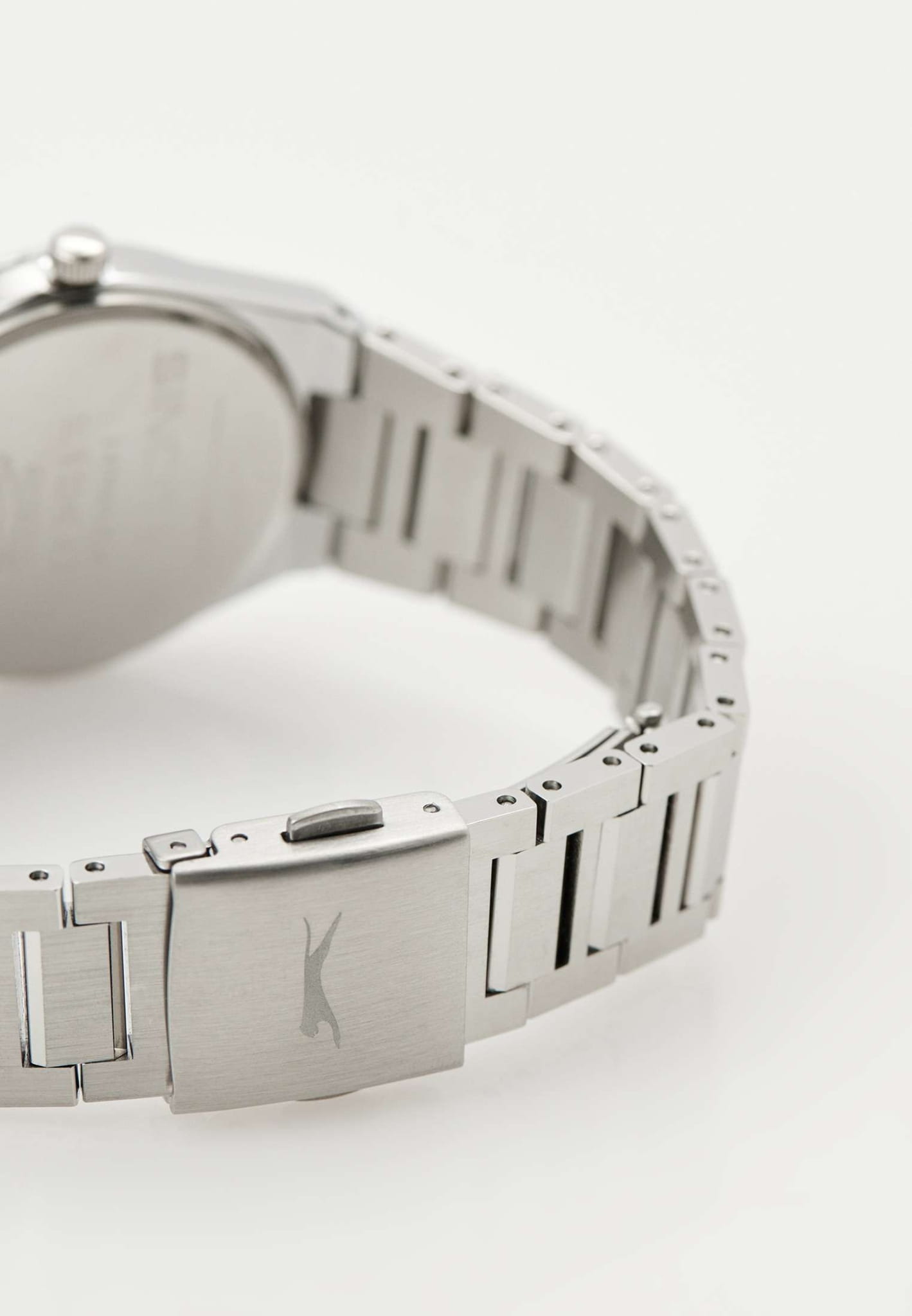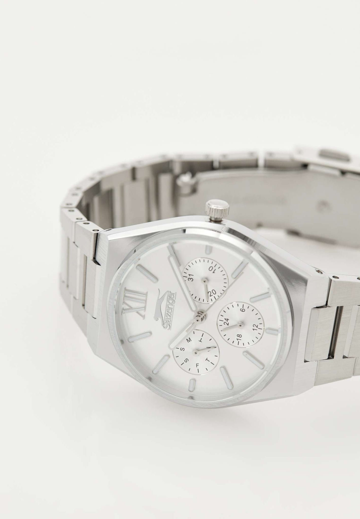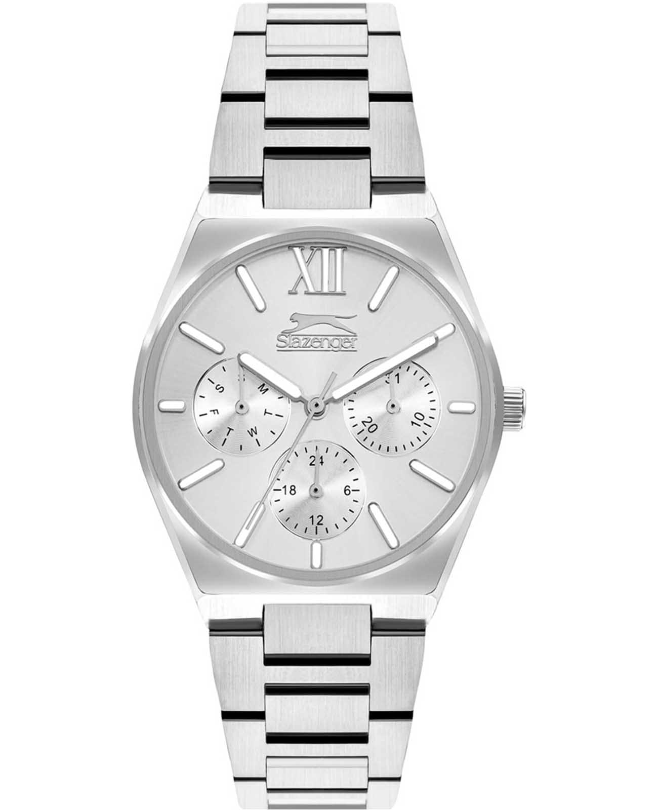 Часы Slazenger SL.09.2243.4.01 сочетают в себе элегантный дизайн и практичность для повседневного использования. Модель выполнена в изысканном серебряном цвете, корпус и браслет изготовлены из прочного металла, что обеспечивает надежность и долговечность изделия. Кварцевый механизм гарантирует точность хода, а минеральное стеклоМинеральное стеклоМинеральное стекло представляет собой искусственно выращенный минерал кварца. Такое стекло отличается особой устойчивостью к повреждениям и царапинам. Уступает по некоторым качествам сапфировому стеклу. защищает серебристый циферблат от механических повреждений. Диаметр корпуса составляет 34 мм, толщина — 9 мм, ширина ремешка — 20 мм, а общий вес часов — всего 87 грамм, что делает их легкими и комфортными на руке. Уровень водозащиты WR 30 позволяет не беспокоиться о случайных брызгах. Для удобства использования в темное время суток предусмотрено люминесцентное покрытиеЛюминесцентное покрытиеПозволяет считывать показания времени в темноте. Производители наносят на стрелки, часовые индексы, безель или поверхность циферблата светонакопительный состав, дающий холодное свечение. стрелок и меток. Дополнительные малые циферблаты отображают дату, день недели и время в 24-часовом формате. Часы оснащены металлическим браслетом с надежной раскладной застёжкойРаскладная застёжкаТакой тип застёжки используется только на браслетах из металла. Она никогда не раскрывается полностью, происходит разделение на 2 и более частей. Раскладывающая застёжка снизит вероятность потери часов к минимуму..