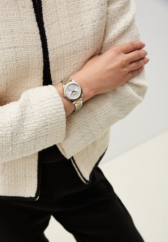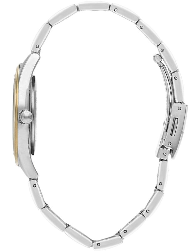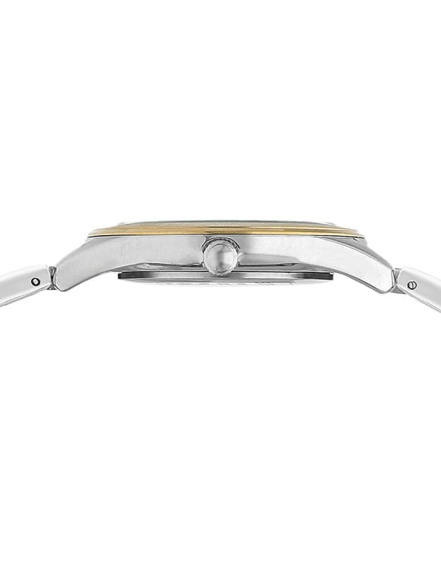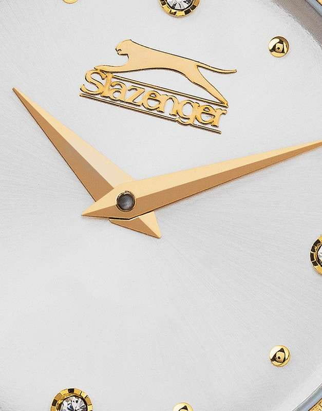 Часы Slazenger SL.09.2253.3.02 — это стильная и элегантная модель, созданная для тех, кто ценит утонченность и надежность. Корпус выполнен из прочного металла, а изящный серебристый браслет с частичным золотистым IP-покрытиемIP-покрытиеМетод ионного напыления. Демонстрирует повышенную устойчивость к истиранию, окислению и химическим веществам. Под воздействием высокого давления и температуры около 1500°C молекулы металла надёжно соединяются с частицами корпуса часов. оснащен удобной раскладной застёжкойРаскладная застёжкаТакой тип застёжки используется только на браслетах из металла. Она никогда не раскрывается полностью, происходит разделение на 2 и более частей. Раскладывающая застёжка снизит вероятность потери часов к минимуму.. На безельБезельВнешний ободок, закрепляющий стекло. В спортивных часах так называется поворотное кольцо с делениями на циферблате, выполняет роль таймера – замеряет отрезки времени на шкале. Неподвижный безель – элемент декора. Однонаправленно вращающийся безель на дайверских часах позволяет фиксировать моменты погружения и выныривания на поверхность. нанесено золотистое IP-покрытиеIP-покрытиеМетод ионного напыления. Демонстрирует повышенную устойчивость к истиранию, окислению и химическим веществам. Под воздействием высокого давления и температуры около 1500°C молекулы металла надёжно соединяются с частицами корпуса часов..  Минеральное стеклоМинеральное стеклоМинеральное стекло представляет собой искусственно выращенный минерал кварца. Такое стекло отличается особой устойчивостью к повреждениям и царапинам. Уступает по некоторым качествам сапфировому стеклу. защищает серебристый циферблат, украшенный сияющими кристаллами, придающими аксессуару особый шарм. Кварцевый механизм обеспечивает точность хода, а водозащита класса WR 30 позволяет не беспокоиться о случайных брызгах. Диаметр корпуса составляет 33 мм, ширина браслета — 16 мм, толщина корпуса — 8 мм, что делает эти часы аккуратными и комфортными для повседневной носки. Модель весит 70 грамм. Часы прекрасно дополнят как деловой, так и повседневный образ, подчеркивая индивидуальность своей обладательницы.
