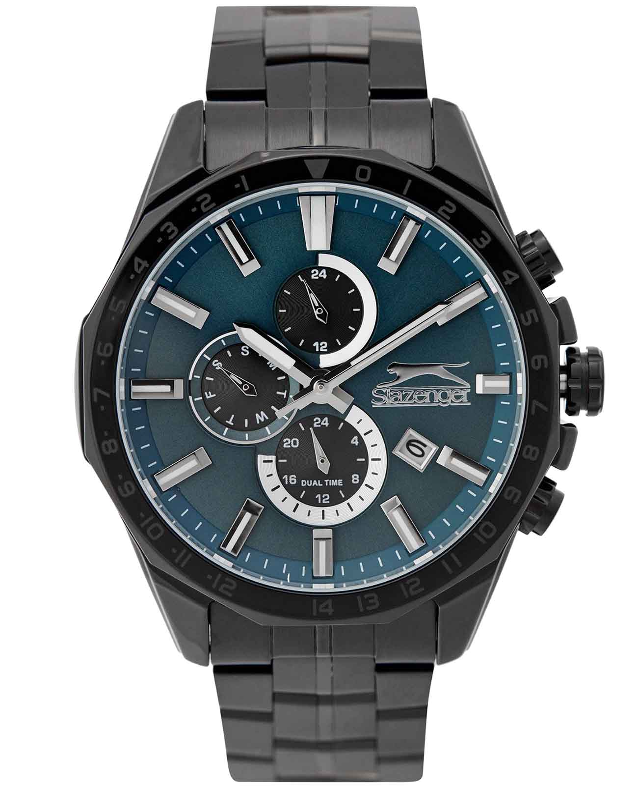 Часы Slazenger SL.09.2259.2.02 — это стильный и многофункциональный аксессуар, который станет достойным дополнением к вашему образу. Корпус и браслет модели выполнены из современного суперметалла с черным IP-покрытиеIP-покрытиеМетод ионного напыления. Демонстрирует повышенную устойчивость к истиранию, окислению и химическим веществам. Под воздействием высокого давления и температуры около 1500°C молекулы металла надёжно соединяются с частицами корпуса часов. — прочного сплава на основе меди с пониженным содержанием цинка и никеля, а также инновационным покрытием, что обеспечивает долговечность и привлекательный внешний вид. На безельБезельВнешний ободок, закрепляющий стекло. В спортивных часах так называется поворотное кольцо с делениями на циферблате, выполняет роль таймера – замеряет отрезки времени на шкале. Неподвижный безель – элемент декора. Однонаправленно вращающийся безель на дайверских часах позволяет фиксировать моменты погружения и выныривания на поверхность. нанесено также черное IP-покрытиеIP-покрытиеМетод ионного напыления. Демонстрирует повышенную устойчивость к истиранию, окислению и химическим веществам. Под воздействием высокого давления и температуры около 1500°C молекулы металла надёжно соединяются с частицами корпуса часов., что придает аксессуару утончённый и универсальный внешний вид. Под минеральным стекломМинеральное стеклоМинеральное стекло представляет собой искусственно выращенный минерал кварца. Такое стекло отличается особой устойчивостью к повреждениям и царапинам. Уступает по некоторым качествам сапфировому стеклу. находится насыщенно синий циферблат с дополнительными функциями: вынесенный 24-часовой индикатор, указатель дня недели, окно даты в положении между 4 и 5 часами, а также функция GMTGMTОтображение времени второго часового пояса.Такая функция особенно актуальна для путешественников и бизнесменов,которые общаются с людьми из разных стран,теперь вы всегда будете знать,какой час у вашего партнёра или близкого человека. для отслеживания второго часового поясаВторой часовой поясФункция, позволяющая отображать время двух часовых поясов одновременно. — всё это делает модель особенно удобной при активном образе жизни и путешествиях. Кварцевый механизм гарантирует высокую точность хода. Диаметр корпуса составляет 46 мм, толщина — 12 мм, что подчёркивает современный характер часов. Стрелки с люминесцентным покрытиемЛюминесцентное покрытиеПозволяет считывать показания времени в темноте. Производители наносят на стрелки, часовые индексы, безель или поверхность циферблата светонакопительный состав, дающий холодное свечение. удобно подсвечиваются в темноте после зарядки на свету. Стальной браслет с раскладной застёжкойРаскладная застёжкаТакой тип застёжки используется только на браслетах из металла. Она никогда не раскрывается полностью, происходит разделение на 2 и более частей. Раскладывающая застёжка снизит вероятность потери часов к минимуму. обеспечивает комфортную посадку. Водозащита до 5 атмосфер позволяет не опасаться случайных брызг или дождя. Часы идеально подходят для ежедневного ношения и особых случаев, а также станут отличным подарком.