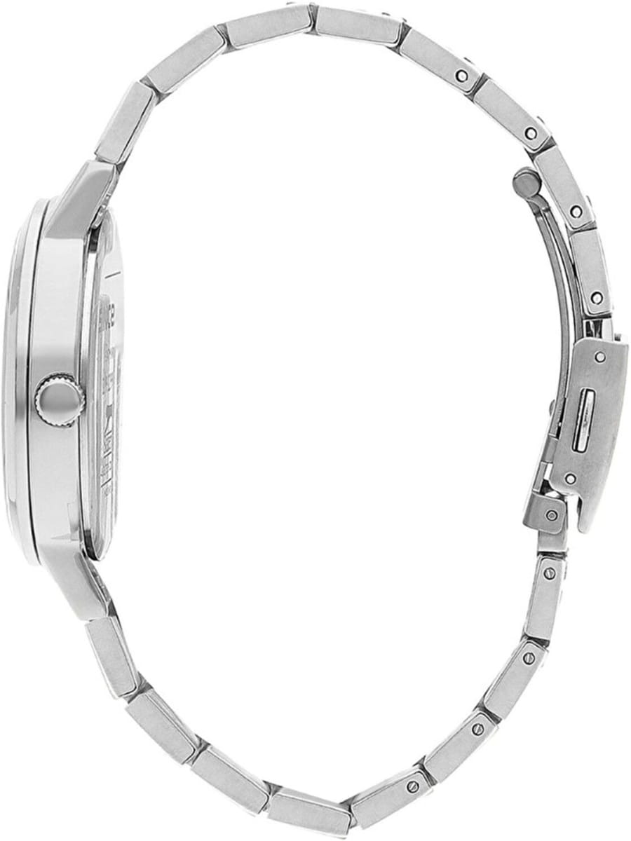 Женские кварцевые часы Slazenger SL.09.2299.3.01 — это элегантный и функциональный аксессуар, сочетающий стиль и надёжность. Корпус и браслет выполнены из суперметалла, защищён минеральным стекломМинеральное стеклоМинеральное стекло представляет собой искусственно выращенный минерал кварца. Такое стекло отличается особой устойчивостью к повреждениям и царапинам. Уступает по некоторым качествам сапфировому стеклу.. Циферблат розового цвета украшен фианитами, придающими модели изысканное сияние. Часы оснащены вынесенными малыми циферблатами для индикации дня недели, даты и времени в 24-часовом формате. Браслет фиксируется на раскладной застёжкеРаскладная застёжкаТакой тип застёжки используется только на браслетах из металла. Она никогда не раскрывается полностью, происходит разделение на 2 и более частей. Раскладывающая застёжка снизит вероятность потери часов к минимуму., обеспечивая удобство и надёжность ношения. Водонепроницаемость 30 м позволяет использовать часы в повседневных условиях, защищая от случайных брызг и капель дождя. Модель подчёркивает женственность и индивидуальность, идеально подходя как для повседневного, так и для торжественного образа.