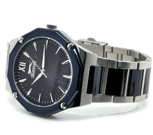 Мужские кварцевые часы Slazenger SL.09.2375.1.05 – идеальное сочетание классического дизайна и современных технологий, созданное для уверенных в себе мужчин. Корпус выполнен из суперметалла серебристого цвета, диаметром 41 мм и толщиной 8 мм, подчёркивает надежность модели и делает их идеальным аксессуаром для любой ситуации – будь то деловая встреча или повседневные выходы. Циферблат надёжно защищён минеральным стекломМинеральное стеклоМинеральное стекло представляет собой искусственно выращенный минерал кварца. Такое стекло отличается особой устойчивостью к повреждениям и царапинам. Уступает по некоторым качествам сапфировому стеклу., которое устойчиво к механическим повреждениям и сохраняет кристальную прозрачность. Неподвижный безельБезельВнешний ободок, закрепляющий стекло. В спортивных часах так называется поворотное кольцо с делениями на циферблате, выполняет роль таймера – замеряет отрезки времени на шкале. Неподвижный безель – элемент декора. Однонаправленно вращающийся безель на дайверских часах позволяет фиксировать моменты погружения и выныривания на поверхность. с IP-покрытиемIP-покрытиеМетод ионного напыления. Демонстрирует повышенную устойчивость к истиранию, окислению и химическим веществам. Под воздействием высокого давления и температуры около 1500°C молекулы металла надёжно соединяются с частицами корпуса часов. синего цвета. Стальной браслет с частичным IP-покрытиемIP-покрытиеМетод ионного напыления. Демонстрирует повышенную устойчивость к истиранию, окислению и химическим веществам. Под воздействием высокого давления и температуры около 1500°C молекулы металла надёжно соединяются с частицами корпуса часов. удобно облегает запястье и фиксируется с помощью раскладной застёжкиРаскладная застёжкаТакой тип застёжки используется только на браслетах из металла. Она никогда не раскрывается полностью, происходит разделение на 2 и более частей. Раскладывающая застёжка снизит вероятность потери часов к минимуму., обеспечивая надёжность и комфорт в повседневном ношении. Эти часы станут не просто аксессуаром, а надежным спутником в любой ситуации, подчеркивая ваш безупречный вкус и деловой стиль. Водозащита 50 метров позволит защитить корпус от случайных брызг или капель дождя.