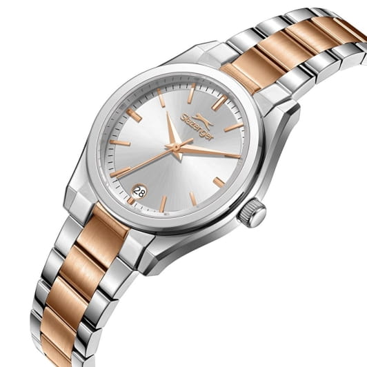 Женские кварцевые часы Slazenger — это элегантный аксессуар. Корпус диаметром 32 мм и толщиной 8 мм выполнен из суперметалла. Циферблат серебристого цвета оформлен индексами и стрелками. Циферблат защищён минеральным стекломМинеральное стеклоМинеральное стекло представляет собой искусственно выращенный минерал кварца. Такое стекло отличается особой устойчивостью к повреждениям и царапинам. Уступает по некоторым качествам сапфировому стеклу.. Механизм — кварцевый. Окошко даты расположено в положении 6 часов. Часы оснащены браслетом из суперметалла с IP-покрытиемIP-покрытиеМетод ионного напыления. Демонстрирует повышенную устойчивость к истиранию, окислению и химическим веществам. Под воздействием высокого давления и температуры около 1500°C молекулы металла надёжно соединяются с частицами корпуса часов. на застёжке «бабочка» с кнопкамиЗастёжка "бабочка"Такой вид застёжки дополняется предохранителями, помогающими избежать случайного раскрытия браслета. Обладают изящным исполнением. . Водонепроницаемость 50 м позволяет использовать часы в повседневных условиях. Гарантия — 12 месяцев. Идеальный выбор для тех, кто ценит стиль и качество.