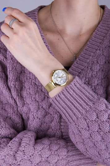 Женские кварцевые часы Slazenger — это выразительный и функциональный аксессуар. Корпус диаметром 34 мм и толщиной 8 мм выполнен из суперметалла с IP-покрытиемIP-покрытиеМетод ионного напыления. Демонстрирует повышенную устойчивость к истиранию, окислению и химическим веществам. Под воздействием высокого давления и температуры около 1500°C молекулы металла надёжно соединяются с частицами корпуса часов.. Циферблат белого цвета оформлен индексами, стрелками и тремя вынесенными субциферблатами: для отображения дня недели, даты и 24-часового формата времени. Циферблат защищён минеральным стекломМинеральное стеклоМинеральное стекло представляет собой искусственно выращенный минерал кварца. Такое стекло отличается особой устойчивостью к повреждениям и царапинам. Уступает по некоторым качествам сапфировому стеклу.. Часы оснащены браслетом миланского плетения из суперметалла на раскладном замкеРаскладная застёжкаТакой тип застёжки используется только на браслетах из металла. Она никогда не раскрывается полностью, происходит разделение на 2 и более частей. Раскладывающая застёжка снизит вероятность потери часов к минимуму.. Водонепроницаемость 30 м позволяет использовать часы в повседневных условиях. Идеальный выбор для тех, кто ценит стиль и качество.