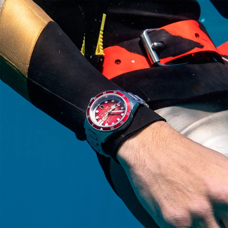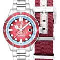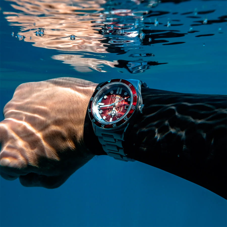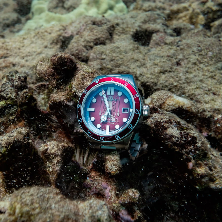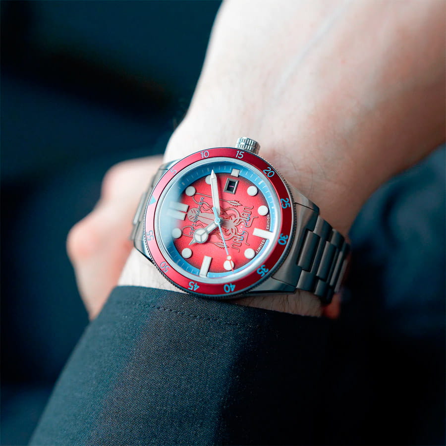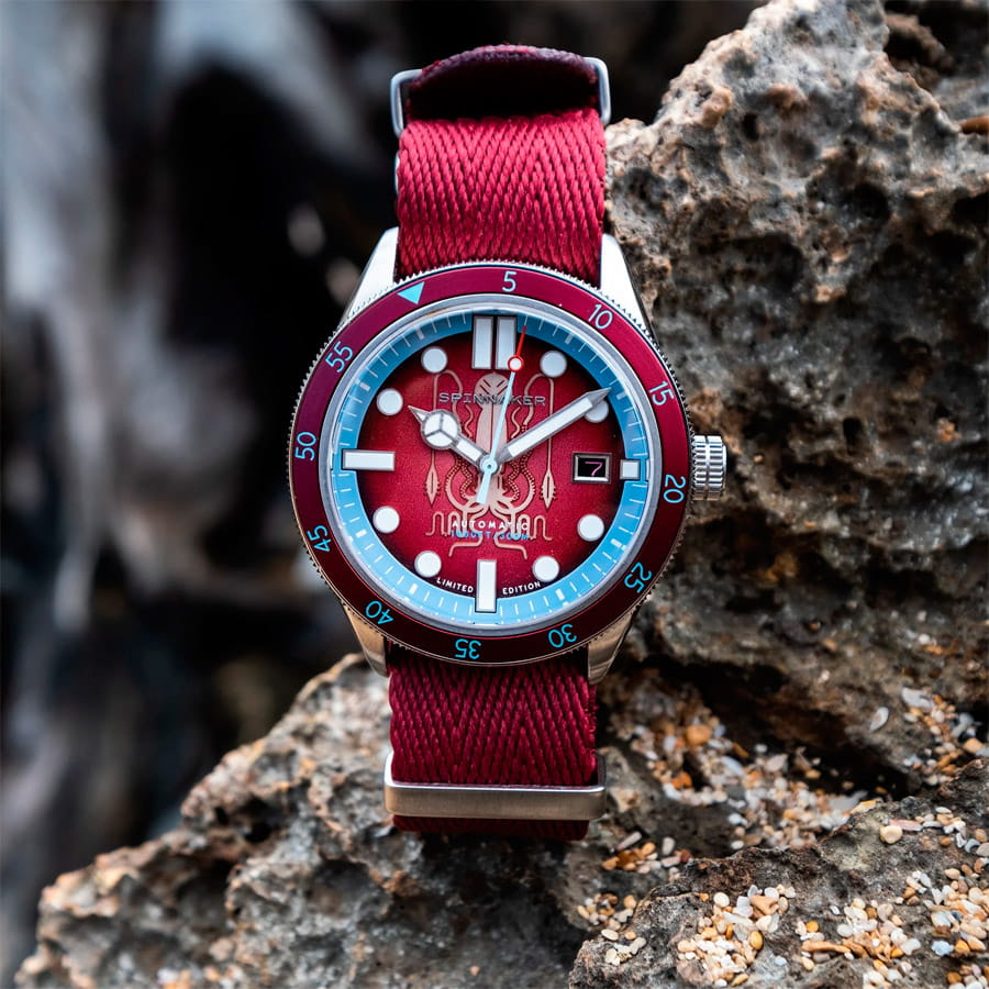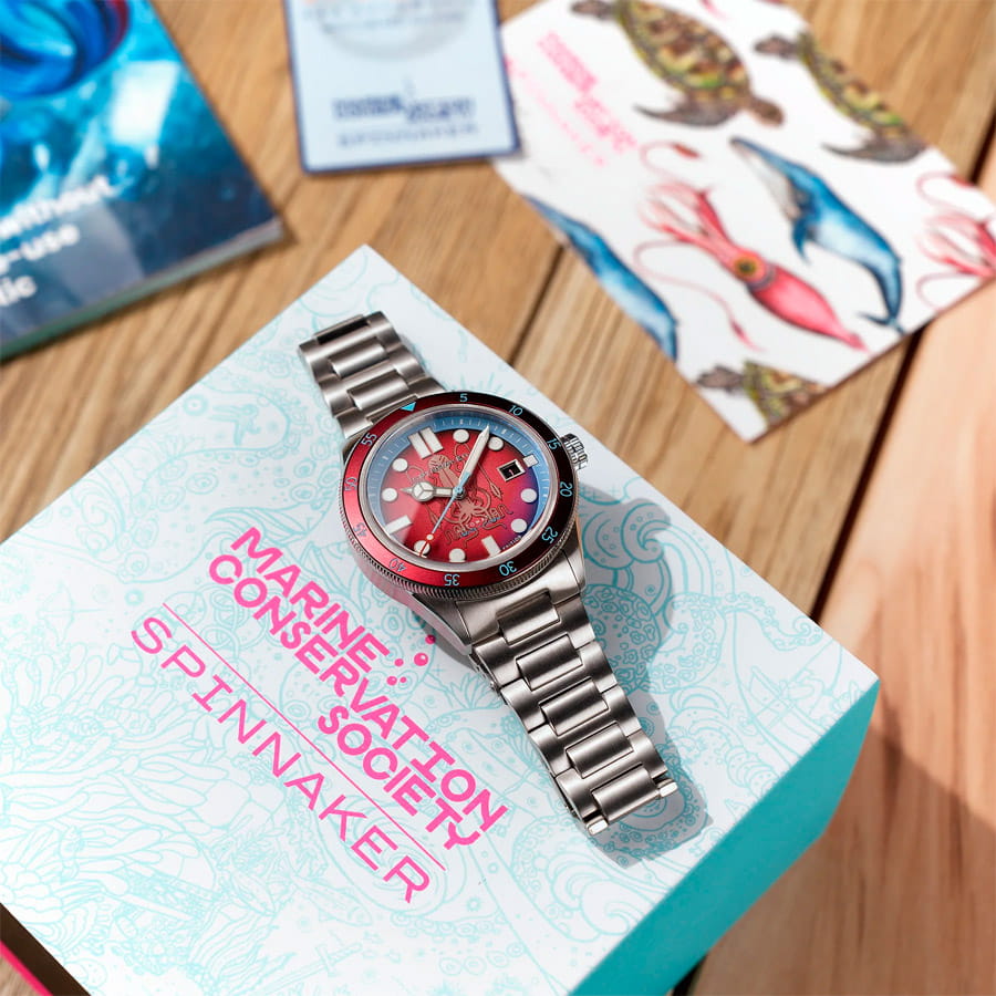 Лимитированная серия Spinnaker Cachill SP-5125-11- 300 экземпляров. Механические часы с автоподзаводом. Водостойкость WR 300. Центральные часовая, минутная и секундная стрелки. Индикация даты. Стрелки и метки с люминесцентным покрытиемЛюминесцентное покрытиеПозволяет считывать показания времени в темноте. Производители наносят на стрелки, часовые индексы, безель или поверхность циферблата светонакопительный состав, дающий холодное свечение.. Циферблат с часовыми индексами в виде штрихов и точек. Корпус выполнен из нержавеющей стали. Диаметр корпуса 43 мм, толщина 13 мм. Устойчивое к возникновению мелких механических повреждений Сапфировое стеклоСапфировое стеклоПрочный и надёжный материал из кристалла сапфира синтетического происхождения, характеризующийся особой твёрдостью и устойчивостью к царапинам и повреждениям. устойчивое к появлению царапин, обладающее высокой прозрачностью с антибликовое покрытиеАнтибликовое покрытиеСлой оксида металла в 0,13-0,3 микрон, благодаря которому стекло часов не бликует и не отражает свет. Антибликовое покрытие уменьшает отражение света в 10 раз, обеспечивая отличную читаемость показателей циферблата.. Поворотный безельБезельВнешний ободок, закрепляющий стекло. В спортивных часах так называется поворотное кольцо с делениями на циферблате, выполняет роль таймера – замеряет отрезки времени на шкале. Неподвижный безель – элемент декора. Однонаправленно вращающийся безель на дайверских часах позволяет фиксировать моменты погружения и выныривания на поверхность.. Браслет выполнен из нержавеющей стали на раскладной застёжкеРаскладная застёжкаТакой тип застёжки используется только на браслетах из металла. Она никогда не раскрывается полностью, происходит разделение на 2 и более частей. Раскладывающая застёжка снизит вероятность потери часов к минимуму.. Ширина браслета 22 мм. В комплекте дополнительный нейлоновый ремешок красного цвета.