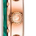 Женские часы Swarovski Octea Lux Chrono 5452498 – это роскошные часы с секундомеромСекундомерСекундоме́р — прибор, способный измерять интервалы времени с точностью до долей секунды. и хронографомХронографФункция позволяет измерять отрезки времени с особой точностью: часы, минуты, секунды. Верным признаком хронографа является наличие на циферблате 3 дополнительных окошек-счётчиков., поистине, образец точности и роскоши, ведь они сочетают в себе лучшие традиции швейцарского часового искусства и неповторимое мастерство Swarovski. Прекрасный аксессуар, подходящий к любому повседневному образу. Часы имеют функцию хронографаХронографФункция позволяет измерять отрезки времени с особой точностью: часы, минуты, секунды. Верным признаком хронографа является наличие на циферблате 3 дополнительных окошек-счётчиков., позволяющую запустить отсчет, остановить его и обнулить результаты. Корпус из нержавеющей стали с PVDPVDУльтратонкое покрытие наносится в технике вакуумного напыления, сочетает в себе нитрид титана особой прочности со слоем золота или оксида хрома. Несёт в себе декоративную или защитную функцию. покрытием оттенка розового золота гармонично сочетается с огранённым кристальным безелемБезельВнешний ободок, закрепляющий стекло. В спортивных часах так называется поворотное кольцо с делениями на циферблате, выполняет роль таймера – замеряет отрезки времени на шкале. Неподвижный безель – элемент декора. Однонаправленно вращающийся безель на дайверских часах позволяет фиксировать моменты погружения и выныривания на поверхность., который встречается только в коллекции часов Swarovski, циферблатом зеленого цвета с рисунком в виде солнечных лучей и ремешком из натуральной кожи с тиснением под крокодила сияют изумрудными оттенками зелёного. Надежное минеральное стеклоМинеральное стеклоМинеральное стекло представляет собой искусственно выращенный минерал кварца. Такое стекло отличается особой устойчивостью к повреждениям и царапинам. Уступает по некоторым качествам сапфировому стеклу. защищает часы от царапин и долго сохраняет первоначальный внешний вид. На часовую, минутную стрелки нанесено люминесцентное покрытиеЛюминесцентное покрытиеПозволяет считывать показания времени в темноте. Производители наносят на стрелки, часовые индексы, безель или поверхность циферблата светонакопительный состав, дающий холодное свечение., которое светится в темноте, создавая необычное изображение.