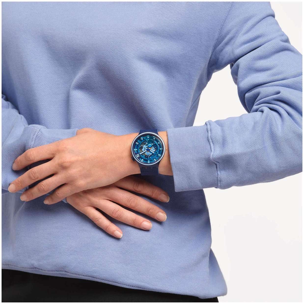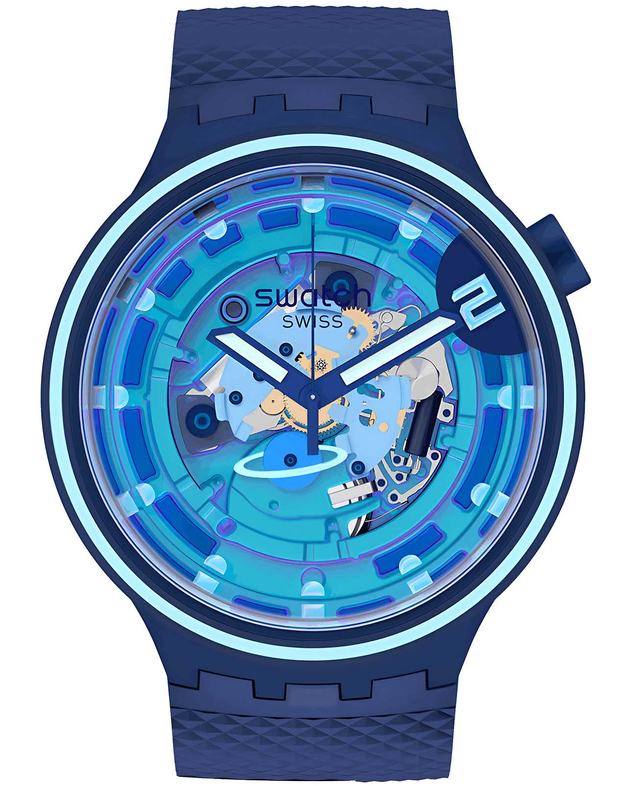 Часы Swatch SB01N101 — это стильный и современный аксессуар для тех, кто ценит лёгкость и комфорт. Часы идеально подойдут как для мужчин, так и для женщин. Модель этих часов идет в комплекте с двумя силиконовыми ремешками в космическом стиле — они эффектно подчеркивают эффект Swatch Solar Spectrum на корпусе часов. Прозрачный циферблат с разноцветным принтом позволяет сделать акцент на светящихся в темноте стрелках. Вместо стандартного колесика механизма находится особый элемент в виде синей планеты. На часовую, минутную стрелки нанесено люминесцентное покрытиеЛюминесцентное покрытиеПозволяет считывать показания времени в темноте. Производители наносят на стрелки, часовые индексы, безель или поверхность циферблата светонакопительный состав, дающий холодное свечение., которое светится в темноте, создавая необычное изображение. Водозащита 30 метров делает часы практичными для повседневного использования. Эти часы подойдут для повседневного ношения и станут ярким акцентом в вашем наряде.