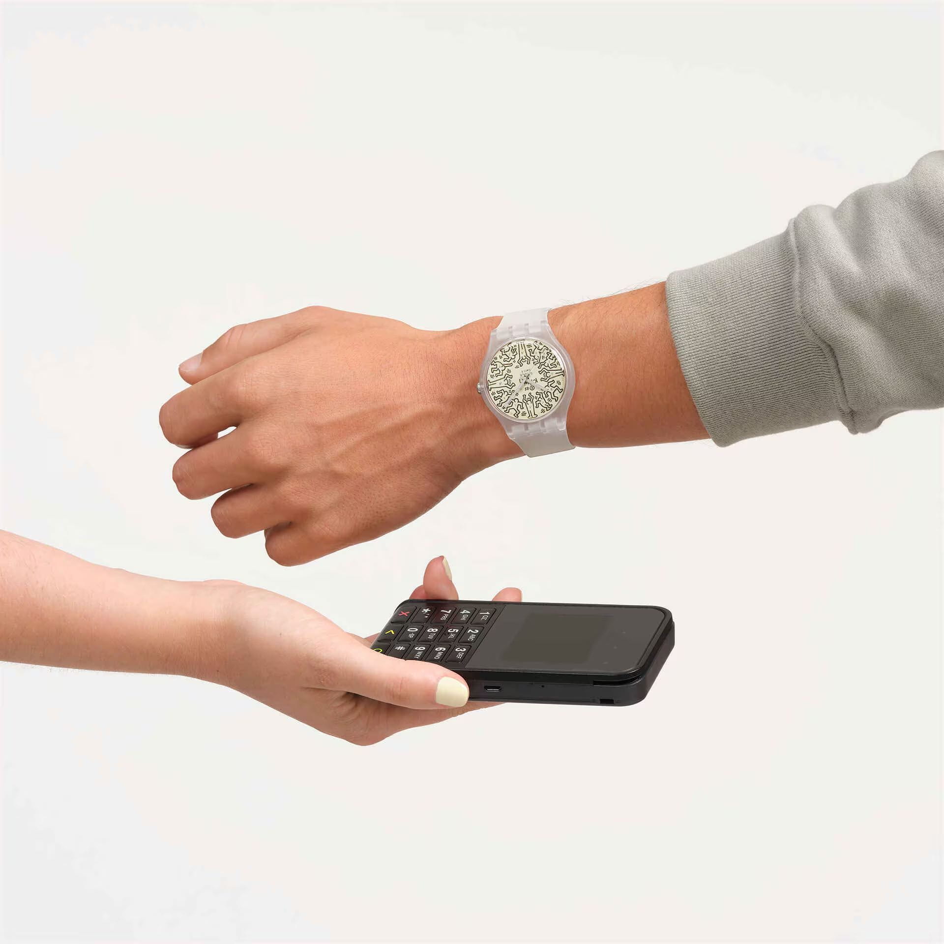 Часы Swatch SO29Z146-5300 — стильный и удобный аксессуар. Часы поддерживают функцию бесконтактной оплаты SwatchPAY!. Матовый светло-бежевый циферблат этих часов украшен серыми рисунками, подписью и авторскими правами художника Кита Харинга, а также интерпретацией логотипа Swatch. Серебристые часовая, минутная и секундная стрелки защищены стеклом из биоматериала. Матовый прозрачный корпус из биоматериала, а также матовые прозрачные ремешок, петля и пряжка завершают дизайн этих часов. Ремешок силиконовый на стандартной застёжке. Внутри часов установлен надежный кварцевый механизм, который обеспечивает точность хода. Эти часы водонепроницаемы до 30 метров, что позволяет не беспокоиться о случайных брызгах или дождевых каплях. Swatch SO29Z146-5300 — это идеальный выбор для тех, кто ценит сочетание стиля, комфорта и функциональности в одном аксессуаре.