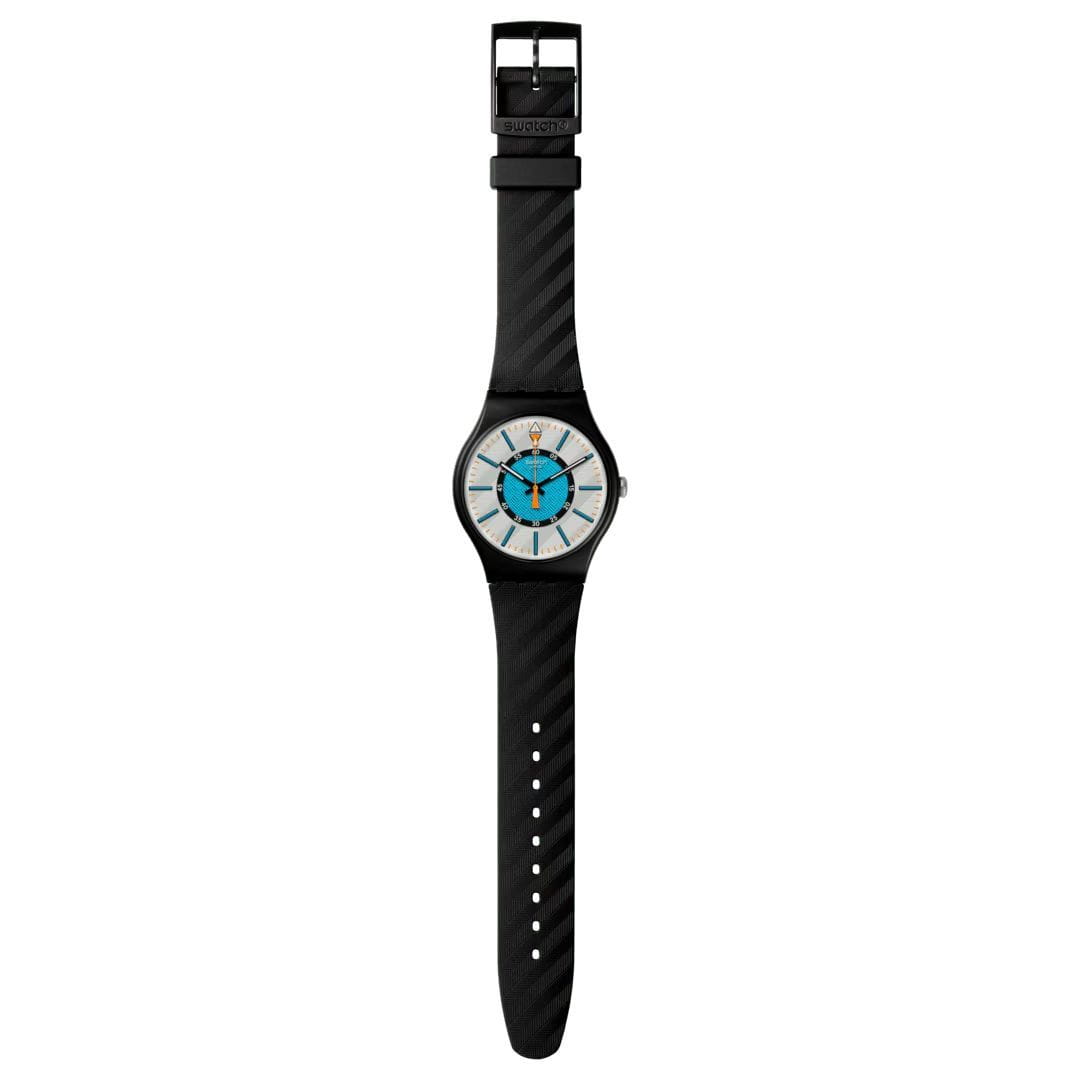 Swatch New Gent Bioceramic Standard SO32B119 "Good to Gorp" - стильные унисекс часы с матово-черным корпусом из инновационного биокерамического материала. Эта модель привлекает внимание многоцветным циферблатом с серебристым, синим и черным оттенками, а также оригинальными 3D-деталями. Часы оснащены надежным кварцевым механизмом и имеют водонепроницаемость 30 метров. Круглый корпус диаметром 41 мм и толщиной 9,85 мм удобно сидит на запястье. Черный силиконовый ремешок обеспечивает комфорт при ношении. Модель оснащена выпуклым акриловым стеклом для защиты циферблата. Особенности часов: