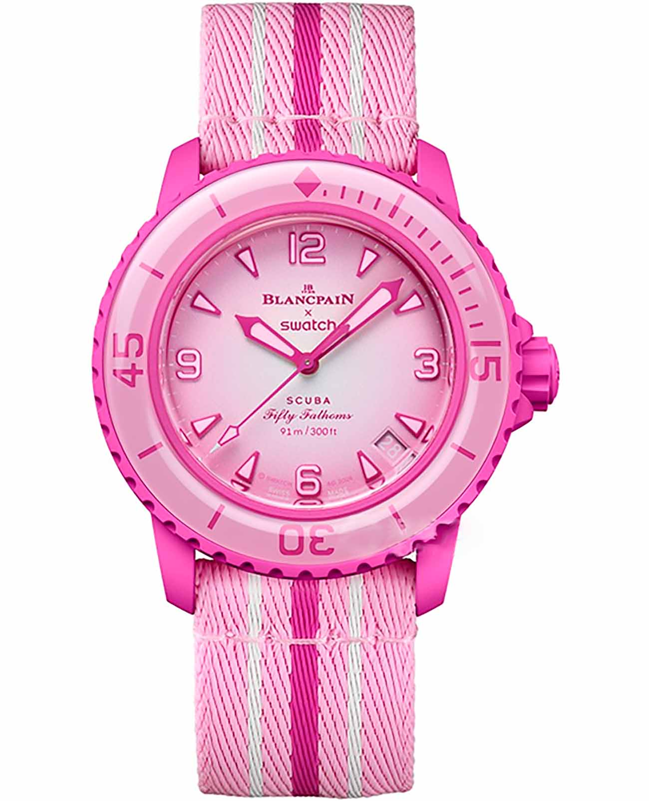 Швейцарские женские механические часы Swatch x Blancpain Pink Ocean SO35P400