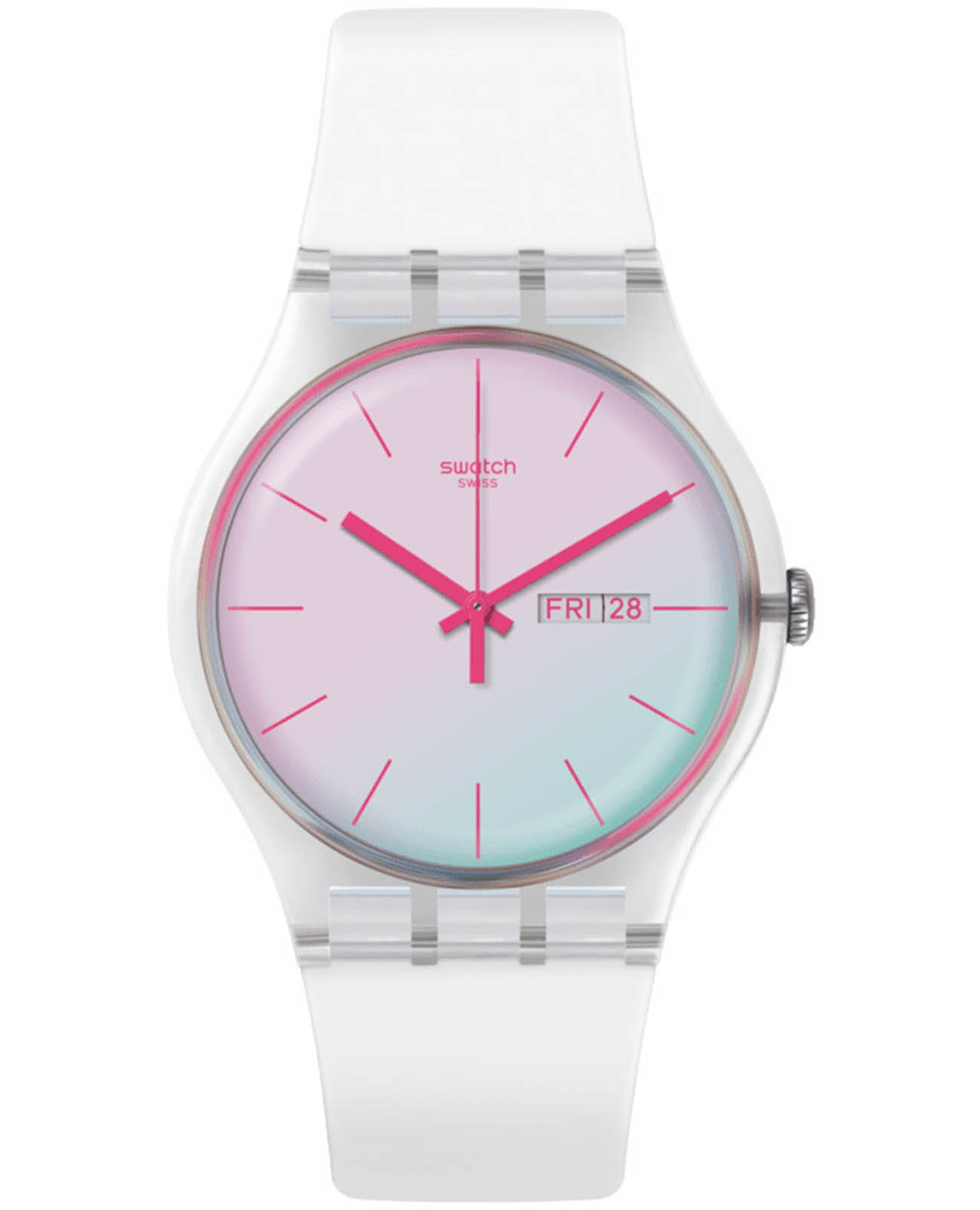 Часы Swatch SUOK713 — это стильный и современный аксессуар для тех, кто ценит лёгкость и комфорт. Часы идеально подойдут как для мужчин, так и для женщин. Розовый, зеленый и голубой циферблат этих часов, украшенный стеклом Swatch Solar Spectrum Glass, привлекает внимание. Белый ремешок и прозрачный корпус являются отличными дополнительными элементами. На циферблате присутствует окошко календаря в районе отметки 3 часа. Водозащита 30 метров делает часы практичными для повседневного использования. Эти часы подойдут для повседневного ношения и станут ярким акцентом в вашем наряде.