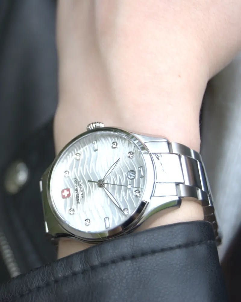 Мужские швейцарские часы Swiss Military Hanowa Thunderbolt Manta Lady SMWLH0005301, кварцевый механизм с высокой точностью. Сапфировое стеклоСапфировое стеклоПрочный и надёжный материал из кристалла сапфира синтетического происхождения, характеризующийся особой твёрдостью и устойчивостью к царапинам и повреждениям. устойчивое к появлению царапин, обладающее высокой прозрачностью. Класс водозащиты: 50 метров, позволит защитить корпус от случайных брызг или капель дождя. Корпус часов изготовлен из стали. Стальной браслет на раскладной застёжкеРаскладная застёжкаТакой тип застёжки используется только на браслетах из металла. Она никогда не раскрывается полностью, происходит разделение на 2 и более частей. Раскладывающая застёжка снизит вероятность потери часов к минимуму..