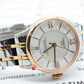 Корпус и продольные звенья на браслете получили цвет розового золота благодаря плотному слою PVD-покрытия, сохраняющему на долгие годы первоначальный блеск. Циферблат с перламутровой вставкой дополняет великолепия. Автоматический калибр Powermatic 80Powermatic 80Эксклюзивный калибр от швейцарской компании ETA с увеличенным запасом хода до 80 часов за счёт удлинённой заводной пружины. Характеризуется улучшенной системой спуска со сниженным трением. швейцарского производства. Сапфировое стекло с антибликовым покрытием. Водонепроницаемость 5 бар. Отображение даты. Габариты: 32 x 32 x 10,7 мм.