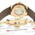 Элегантная модель имеет лаконичный циферблат с узнаваемым узором по окружности, отсутствие лишних деталей благоприятно для отличной считываемости показателей. Корпус из нержавеющей стали имеет PVD-покрытиеPVDУльтратонкое покрытие наносится в технике вакуумного напыления, сочетает в себе нитрид титана особой прочности со слоем золота или оксида хрома. Несёт в себе декоративную или защитную функцию. в цвете розового золота, устойчивое к истиранию. Уникальный калибр Powermatic 80Powermatic 80Эксклюзивный калибр от швейцарской компании ETA с увеличенным запасом хода до 80 часов за счёт удлинённой заводной пружины. Характеризуется улучшенной системой спуска со сниженным трением. с увеличенным запасом хода до 80 часов. Антибликовое покрытие стекла из сапфира. Ремешок из натуральной кожи. . Функции: GMTGMTОтображение времени второго часового пояса.Такая функция особенно актуальна для путешественников и бизнесменов,которые общаются с людьми из разных стран,теперь вы всегда будете знать,какой час у вашего партнёра или близкого человека., календарь. Габариты: 42 x 42 x 12,5 мм.