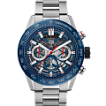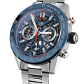 Часы TAG Heuer Carrera диаметром 45 мм имеют корпус из нержавеющей стали и синий циферблат с неподвижным керамическим безелем синего цвета. Изысканный скелетонизированный циферблат позволяет рассмотреть мануфактурный калибр. TAG Heuer Carrera CBG2A11.BA0654, механический механизм (автоматический калибр) с высокой точностью. Сапфировое стекло устойчивое к появлению царапин, обладающее высокой прозрачностью. Класс водозащиты: 100 метров, позволит плавать, нырять и заниматься другими водными видами спорта. Корпус часов изготовлен из стали, цвета.