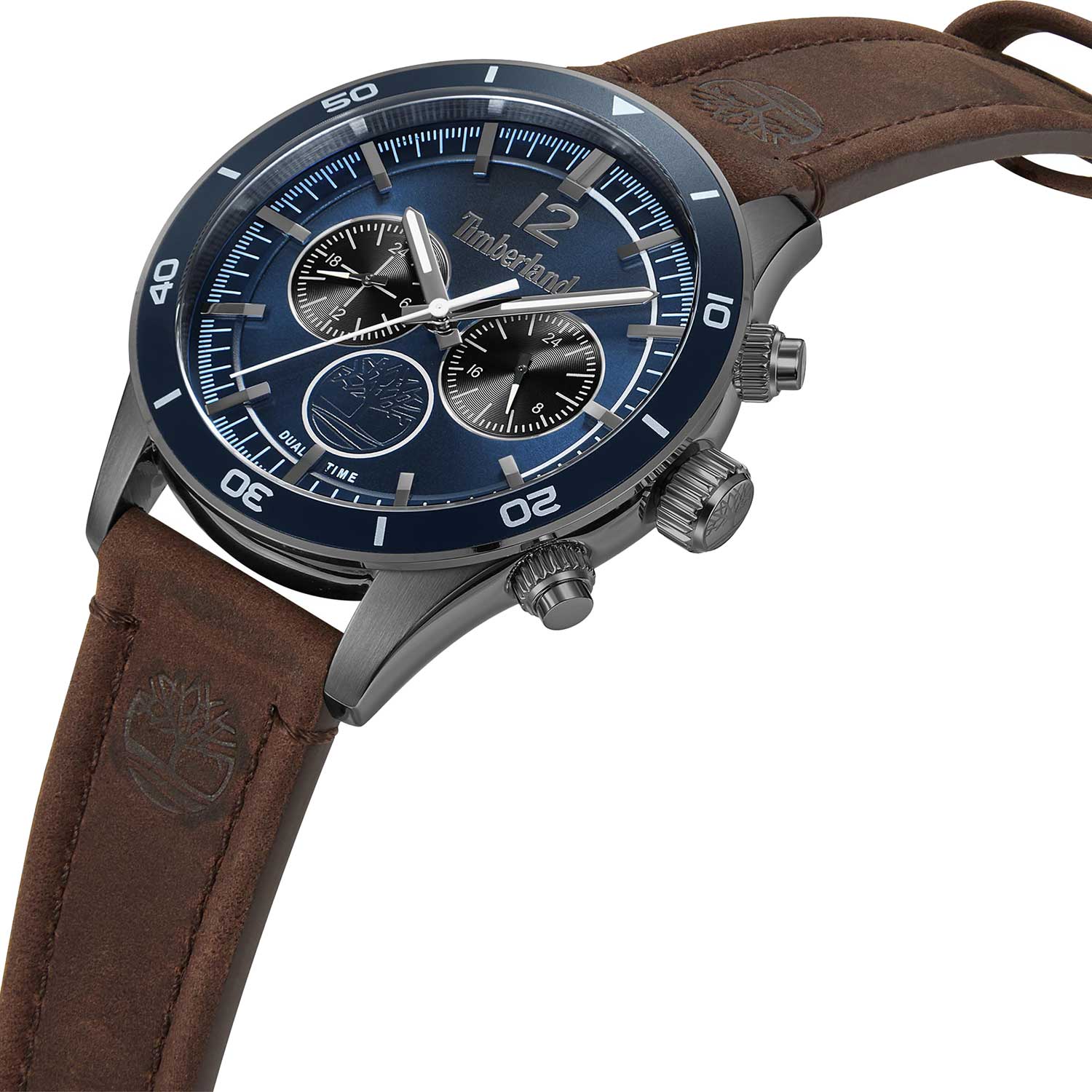 Мужские часы-хронографХронографФункция позволяет измерять отрезки времени с особой точностью: часы, минуты, секунды. Верным признаком хронографа является наличие на циферблате 3 дополнительных окошек-счётчиков. Timberland Abbotville TDWGF2230903 имеют кварцевый механизм с высокой точностью. Класс водозащиты: 50 метров, позволит защитить корпус от случайных брызг или капель дождя. 12-ти и 24-х часовой формат времени. СекундомерСекундомерСекундоме́р — прибор, способный измерять интервалы времени с точностью до долей секунды.. Корпус часов изготовлен из стали.БезельБезельВнешний ободок, закрепляющий стекло. В спортивных часах так называется поворотное кольцо с делениями на циферблате, выполняет роль таймера – замеряет отрезки времени на шкале. Неподвижный безель – элемент декора. Однонаправленно вращающийся безель на дайверских часах позволяет фиксировать моменты погружения и выныривания на поверхность. с IP-покрытиемIP-покрытиеМетод ионного напыления. Демонстрирует повышенную устойчивость к истиранию, окислению и химическим веществам. Под воздействием высокого давления и температуры около 1500°C молекулы металла надёжно соединяются с частицами корпуса часов..