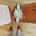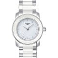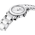 Модель в серебристо-белом оформлении станет изящным украшением к вечернему платью или классическому костюму. Для изготовления часов использовались современные материалы: хирургическая сталь и керамика, отличающаяся гипоаллергенными свойствами. Керамика принимает температурный режим тела человека и обеспечивает комфорт при ношении. Циферблат инкрустирован бриллиантами, имеющими законное происхождение. Кварцевый механизм ETA F03.111. Функция EOLEOLПредставляет собой систему, уведомляющую владельца часов о необходимости замены элемента питания. За 2 недели до полного разряда батарейки секундная стрелка перестаёт ходить чётко и начинает перепрыгивать на 3-4 деления.. Габариты: 28 x 28 x 6,4 мм.