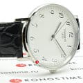 Часы отличаются высоким швейцарским качеством, они оснащены кварцевым механизмом ETA 902.101. Чёрный ремешок из натуральной кожи с тиснением под кожу крокодила отлично гармонирует с белым циферблатом. Корпус из хирургической стали 316L с антикоррозионными свойствами. Стекло из сапфира препятствует появлению царапин на поверхности. Водонепроницаемость при давлении 3 бар. Габариты: 38 x 38 x 6,5 мм.