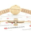 Роскошный аксессуар в цвете "розовое золото" получил такой оттенок благодаря износостойкому PVD-покрытиюPVDУльтратонкое покрытие наносится в технике вакуумного напыления, сочетает в себе нитрид титана особой прочности со слоем золота или оксида хрома. Несёт в себе декоративную или защитную функцию.. Часы с перламутровым циферблатом стилизованы под ювелирное изделие, оригинальный браслет с ассиметричными выступами украсит ваше запястье. Кварцевый калибр ETA F03.111 с высокой точностью хода. Сапфировое стекло противостоит образованию царапин и отметин. Функция EOLEOLПредставляет собой систему, уведомляющую владельца часов о необходимости замены элемента питания. За 2 недели до полного разряда батарейки секундная стрелка перестаёт ходить чётко и начинает перепрыгивать на 3-4 деления.. Апертура даты. Габариты: 30 x 30 x 6,35 мм.