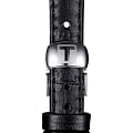 Тонкий чёрный ремешок из натуральной кожи и общее лаконичное исполнение модели позволяет не задумываться о подборе цветовых сочетаний в одежде - вы можете выбирать любые наряды. Минималистичный циферблат дополнен оригинальным узором. Механические часы с автоподзаводом оснащены механизмом ETA 2671 с запасом хода 38 часов. Сапфировое стекло противостоит образованию царапин на поверхности. Индикация текущего числа. Габариты: 25,3 x 25,3 x 8,4 мм.