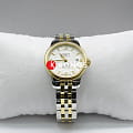Минималистичный светлый циферблат украшен оригинальным узором, Браслет и корпус из долговечной стали с противокоррозионными свойствами имеют PVD-покрытиеPVDУльтратонкое покрытие наносится в технике вакуумного напыления, сочетает в себе нитрид титана особой прочности со слоем золота или оксида хрома. Несёт в себе декоративную или защитную функцию. в золотистом цвете. Механические часы комплектуются механизмом ETA 2671, сохраняющим запас хода 38 часов. Классический стиль. Стекло из сапфира. Отображение текущего числа. . Габариты: 25,3 x 25,3 x 8,4 мм.