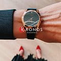 Минималистичный чёрный циферблат украшен эксклюзивным узором. На тёмном фоне идеально смотрятся тонкие золотистые стрелки в виде лепестков. Часы имеют PVD-покрытиеPVDУльтратонкое покрытие наносится в технике вакуумного напыления, сочетает в себе нитрид титана особой прочности со слоем золота или оксида хрома. Несёт в себе декоративную или защитную функцию. корпуса цвета розового золота. Внутри находится кварцевый механизм ETA F04.111 с высокой точностью хода. Сапфировое стекло. . Функция EOLEOLПредставляет собой систему, уведомляющую владельца часов о необходимости замены элемента питания. За 2 недели до полного разряда батарейки секундная стрелка перестаёт ходить чётко и начинает перепрыгивать на 3-4 деления.. Габариты: 30 x 30 x 8,7 мм.