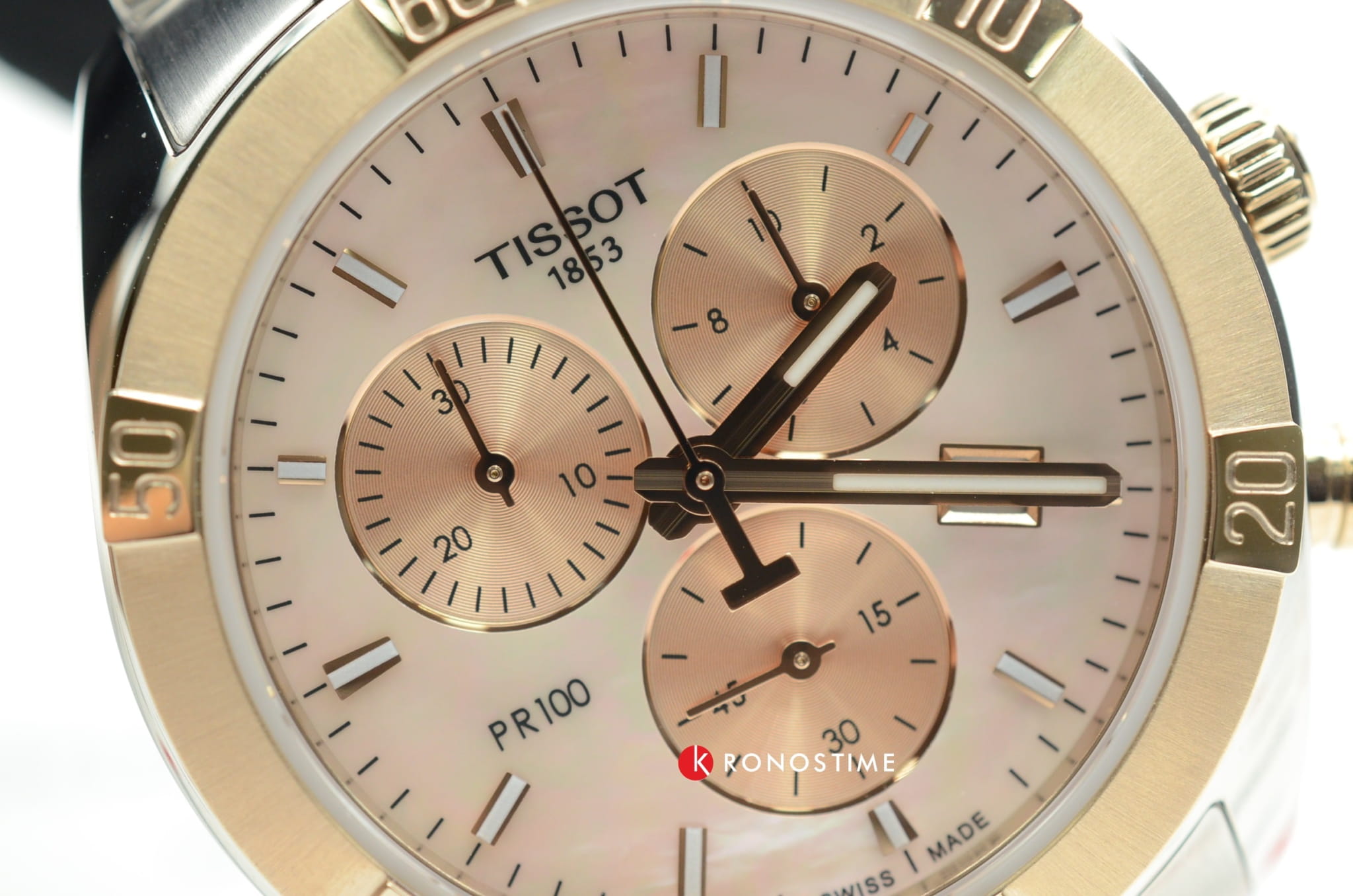 Женские наручные часы из коллекции PR 100 можно носить в качестве дополнения к любому наряду - стильный хронографХронографФункция позволяет измерять отрезки времени с особой точностью: часы, минуты, секунды. Верным признаком хронографа является наличие на циферблате 3 дополнительных окошек-счётчиков. с перламутровым циферблатом идеально смотрится на запястье.