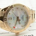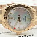 Стильный перламутровый циферблат инкрустирован 12 бриллиантами цвета Top Wesselton, роскошные переливы завораживают и приманивают взгляды окружающих. Драгоценные камни гарантировано имеют законное происхождение и никогда не были замешаны в финансовых конфликтах. Модель имеет привлекательное PVD-покрытиеPVDУльтратонкое покрытие наносится в технике вакуумного напыления, сочетает в себе нитрид титана особой прочности со слоем золота или оксида хрома. Несёт в себе декоративную или защитную функцию. в цвете розового золота. Часы оснащены высокоточным кварцевым калибром ETA 955.412 с 7 камнями. Люминесцентная подсветкаЛюминесцентное покрытиеПозволяет считывать показания времени в темноте. Производители наносят на стрелки, часовые индексы, безель или поверхность циферблата светонакопительный состав, дающий холодное свечение. стрелок. Надёжное сапфировое стекло. Индикация текущего числа, функция EOLEOLПредставляет собой систему, уведомляющую владельца часов о необходимости замены элемента питания. За 2 недели до полного разряда батарейки секундная стрелка перестаёт ходить чётко и начинает перепрыгивать на 3-4 деления.. Габариты: 36 x 36 x 9 мм.