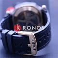 Рельефный безельБезельВнешний ободок, закрепляющий стекло. В спортивных часах так называется поворотное кольцо с делениями на циферблате, выполняет роль таймера – замеряет отрезки времени на шкале. Неподвижный безель – элемент декора. Однонаправленно вращающийся безель на дайверских часах позволяет фиксировать моменты погружения и выныривания на поверхность. напоминает тормозной диск, внушительный циферблат с крупными элементами дизайна шикарно смотрится на мужском запястье. Работа часов запускается от автоматического калибра C01.211, сохраняющего запас хода до 45 часов. Корпус имеет устойчивое к истиранию PVD-покрытиеPVDУльтратонкое покрытие наносится в технике вакуумного напыления, сочетает в себе нитрид титана особой прочности со слоем золота или оксида хрома. Несёт в себе декоративную или защитную функцию. в цвете золота. Прозрачная задняя крышка в виде колеса. Стрелки и метки с люминесцентной подсветкойЛюминесцентное покрытиеПозволяет считывать показания времени в темноте. Производители наносят на стрелки, часовые индексы, безель или поверхность циферблата светонакопительный состав, дающий холодное свечение.. Стильный и практичный ремешок из натуральной кожи с внутренней стороной из каучука с влагоотталкивающими свойствами. Антибликовое покрытие сапфирового стекла. ХронографХронографФункция позволяет измерять отрезки времени с особой точностью: часы, минуты, секунды. Верным признаком хронографа является наличие на циферблате 3 дополнительных окошек-счётчиков., секундомер, , индикация числа. Габариты: 48,8 x 45 x 16,6 мм.