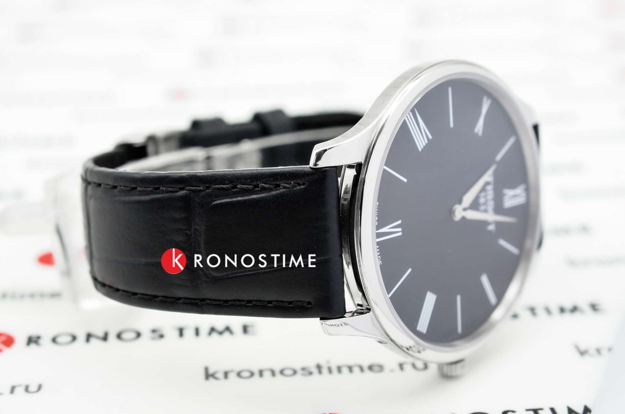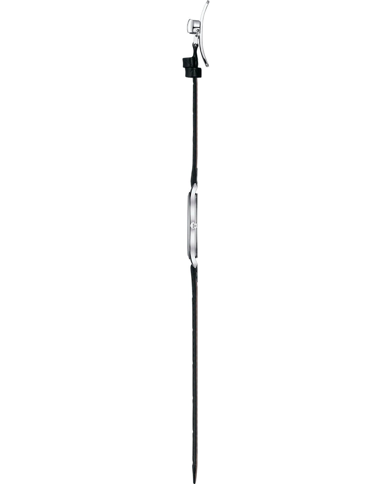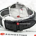 Модель имеет минималистичное оформление, ни одна деталь не отвлекает от просмотра показателей времени. Элегантный аксессуар в чёрном исполнении имеет оттенок винтажа, циферблат украшают римские цифры. Часы отличаются невероятно тонким корпусом - всего 5, 2 мм. Кварцевый механизм ETA E64.031. Сапфировое стекло. Ремешок из натуральной кожи с имитацией рисунка кожи крокодила. EOLEOLПредставляет собой систему, уведомляющую владельца часов о необходимости замены элемента питания. За 2 недели до полного разряда батарейки секундная стрелка перестаёт ходить чётко и начинает перепрыгивать на 3-4 деления., отображение даты. Габариты: 39 x 39 x 5,2 мм.