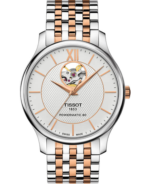 Швейцарские механические часы Tissot Tradition Powermatic 80 Open Heart T063.907.22.038.01