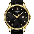 TISSOT T063.610.36.057.00 T-Classic Tradition - женские кварцевые наручные часы. Корпус этих часов среднего размера (42 мм) и выполнен из нержавеющей стали L316 с PVD-покрытием цвета желтого золота. Модель TISSOT T063.610.36.057.00 T-Classic Tradition имеет устойчивое к царапинам сапфировое стекло, ремешок из натуральной кожи черного цвета, черный циферблат. Калибр механизма: ETA F06.111. Класс водозащиты: 30 м / 3 АТМ (защита от брызг и случайных капель).