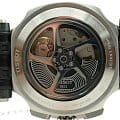 Наручные часы с антрацитовым циферблатом воплощают собой отражение мотогоночных соревнований, даже прозрачная задняя крышка выполнена в виде колеса. Оригинальности добавляет внушительный фактурный безельБезельВнешний ободок, закрепляющий стекло. В спортивных часах так называется поворотное кольцо с делениями на циферблате, выполняет роль таймера – замеряет отрезки времени на шкале. Неподвижный безель – элемент декора. Однонаправленно вращающийся безель на дайверских часах позволяет фиксировать моменты погружения и выныривания на поверхность.. Внутри стального корпуса с PVD-покрытиемPVDУльтратонкое покрытие наносится в технике вакуумного напыления, сочетает в себе нитрид титана особой прочности со слоем золота или оксида хрома. Несёт в себе декоративную или защитную функцию. находится автоматический калибр C01.211 с запасом хода 45 часов. Стильный ремешок из каучука и кожи. Стекло из сапфира с антибликовым покрытием. Функции: хронографХронографФункция позволяет измерять отрезки времени с особой точностью: часы, минуты, секунды. Верным признаком хронографа является наличие на циферблате 3 дополнительных окошек-счётчиков., секундомер, отображение даты, тахиметрТахиметрРазмеченная шкала, располагается на ободке или безеле часов. Тахиметр позволяет рассчитать скорость на определённом участке пути, расстояние измеряется в километрах или милях.. Габариты: 48,8 x 45 x 16,6 мм.