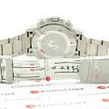 Стильный хронографХронографФункция позволяет измерять отрезки времени с особой точностью: часы, минуты, секунды. Верным признаком хронографа является наличие на циферблате 3 дополнительных окошек-счётчиков. со спортивным дизайном идеально подойдёт к любой одежде, массивный циферблат добавляет солидности и респектабельности. Внутри стального корпуса находится высокоточный кварцевый калибр ETA G10.212. Сохраняется водонепроницаемость при давлении 30 бар, этому способствуют заводная головка и задняя крышка, которые завинчиваются. Люминесцентная подсветкаЛюминесцентное покрытиеПозволяет считывать показания времени в темноте. Производители наносят на стрелки, часовые индексы, безель или поверхность циферблата светонакопительный состав, дающий холодное свечение.. Антибликовое покрытие сапфирового стекла. Застёжка с фиксатором и удлинением для дайверовУдлинение для дайверовЗастёжка с удлинением для дайверов представляет собой безопасное крепление, которое позволяет надевать часы поверх гидрокостюма. Гибкая застёжка удлиняется на 1-2 миллиметра.. Габариты: 45,5 x 45,5 x 12,8 мм.