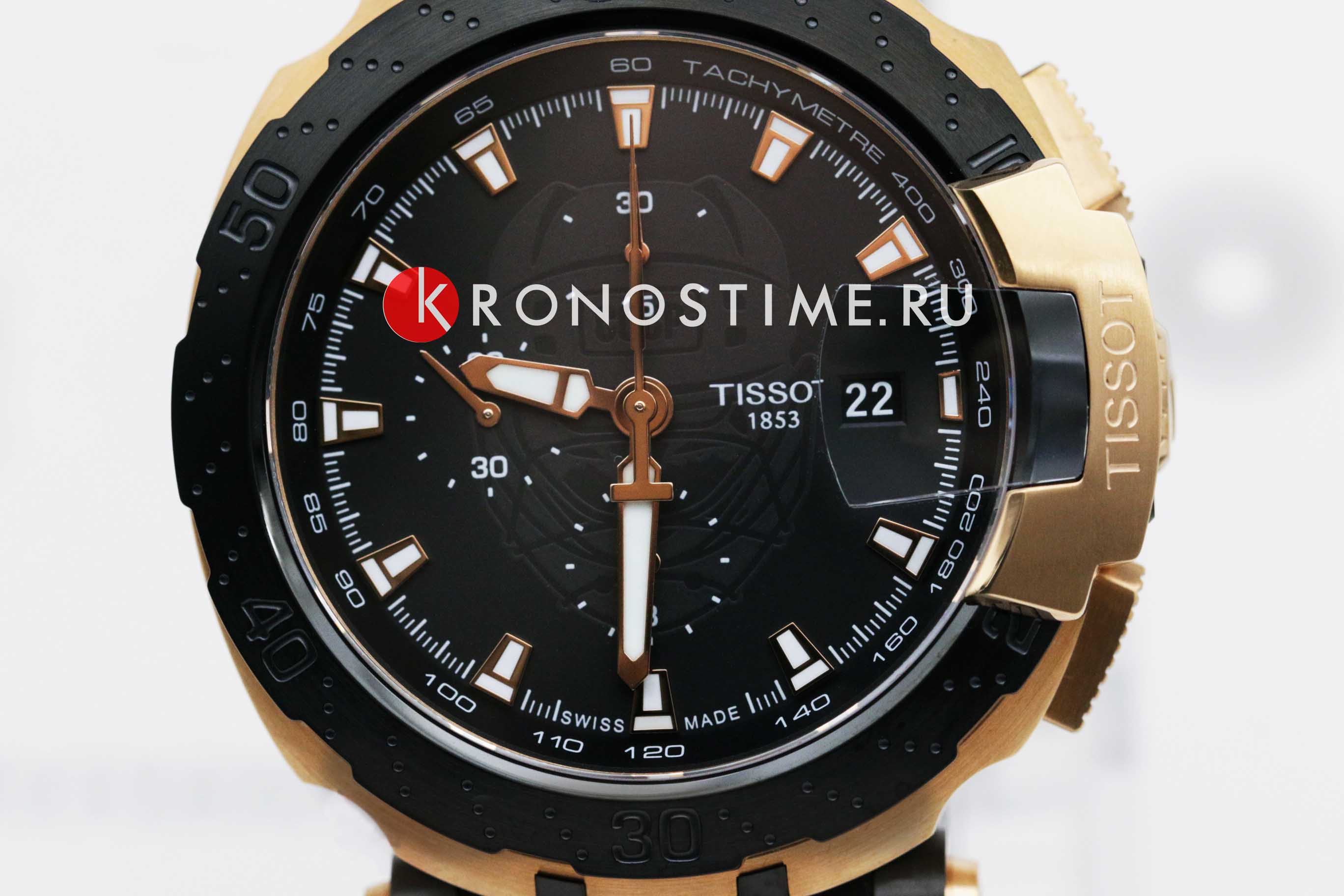 Мужские лимитированные швейцарские механические часы (20 экземпляров на Россию) из коллекции T-Race выпущены в честь легендарного хоккеиста Владислава Третьяка. (Владислав Третьяк — единственный хоккеист, которому удалось три раза получить награду лучшему хоккеисту Европы — «Золотую клюшку». Третьяк завоевал в общей сложности 90 медалей, в числе которых 3 золотые олимпийские, 10 золотых медалей чемпиона мира, 12 золотых — чемпиона Европы.) Часы с автоподзаводом, они оснащены популярным калибром ETA C01.211 с запасом хода 45 часов. Стальной корпус с чёрным и розово-золотистым PVDPVDУльтратонкое покрытие наносится в технике вакуумного напыления, сочетает в себе нитрид титана особой прочности со слоем золота или оксида хрома. Несёт в себе декоративную или защитную функцию.-покрытием. Сапфировое стеклоСапфировое стеклоПрочный и надёжный материал из кристалла сапфира синтетического происхождения, характеризующийся особой твёрдостью и устойчивостью к царапинам и повреждениям.. Удобный силиконовый браслет с раскладной застёжкойРаскладная застёжкаТакой тип застёжки используется только на браслетах из металла. Она никогда не раскрывается полностью, происходит разделение на 2 и более частей. Раскладывающая застёжка снизит вероятность потери часов к минимуму.. Люминесцентное покрытиеЛюминесцентное покрытиеПозволяет считывать показания времени в темноте. Производители наносят на стрелки, часовые индексы, безель или поверхность циферблата светонакопительный состав, дающий холодное свечение.. Водостойкость до 10 бар. СекундомерСекундомерСекундоме́р — прибор, способный измерять интервалы времени с точностью до долей секунды., тахиметрТахиметрРазмеченная шкала, располагается на ободке или безеле часов. Тахиметр позволяет рассчитать скорость на определённом участке пути, расстояние измеряется в километрах или милях., индикация числа. Габариты: 47,25 x 45 x 16 мм. Производство и сборка: Швейцария.