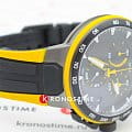 Спортивный аксессуар станет заметным элементом индивидуального образа, броская модель позволит вам стать ключевой персоной в любой ситуации. Часы выполнены в жёлто-чёрном исполнении, яркие цветовые детали официальных оттенков гонки придают им динамичность. Они идеально сидят на запястье благодаря комфортному силиконовому ремешку. Швейцарский кварцевый механизм ETA G10.212. Сапфировое стекло. Прочный корпус с чёрным и серым PVD-покрытиемPVDУльтратонкое покрытие наносится в технике вакуумного напыления, сочетает в себе нитрид титана особой прочности со слоем золота или оксида хрома. Несёт в себе декоративную или защитную функцию.. Силиконовый ремешок с водоотталкивающими свойствами. Люминесцентная подсветкаЛюминесцентное покрытиеПозволяет считывать показания времени в темноте. Производители наносят на стрелки, часовые индексы, безель или поверхность циферблата светонакопительный состав, дающий холодное свечение.. Функции: хронографХронографФункция позволяет измерять отрезки времени с особой точностью: часы, минуты, секунды. Верным признаком хронографа является наличие на циферблате 3 дополнительных окошек-счётчиков., секундомер, календарь, тахиметрТахиметрРазмеченная шкала, располагается на ободке или безеле часов. Тахиметр позволяет рассчитать скорость на определённом участке пути, расстояние измеряется в километрах или милях.. Габариты: 44,5 x 44,5 x 11,4 мм.