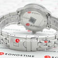 Швейцарские кварцевые часы комплектуются механизмом ETA G10.211 – популярный калибр с высокой точностью хода. Тёмно-синий циферблат дополнен стильными элементами: большие кнопки, 3 дополнительных счётчика, чёткие часовые индексы и конические стрелки с люминесцентной подсветкойЛюминесцентное покрытиеПозволяет считывать показания времени в темноте. Производители наносят на стрелки, часовые индексы, безель или поверхность циферблата светонакопительный состав, дающий холодное свечение.. Корпус из нержавеющей стали 316L. Завинчивающиеся заводная головка и задняя крышка корпуса. Водонепроницаемость 200 метров. Габариты: 42 x 43 x 12 мм.