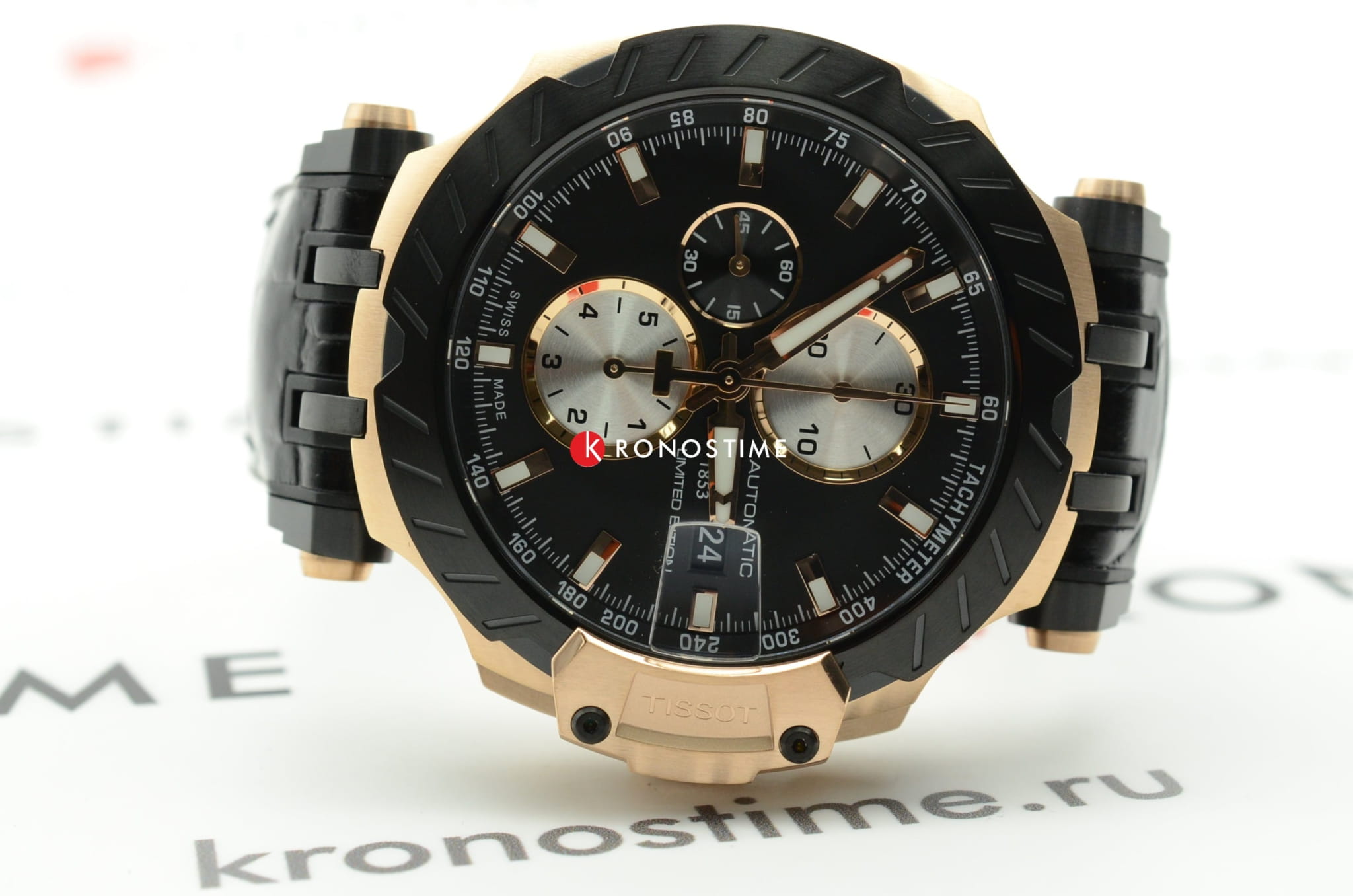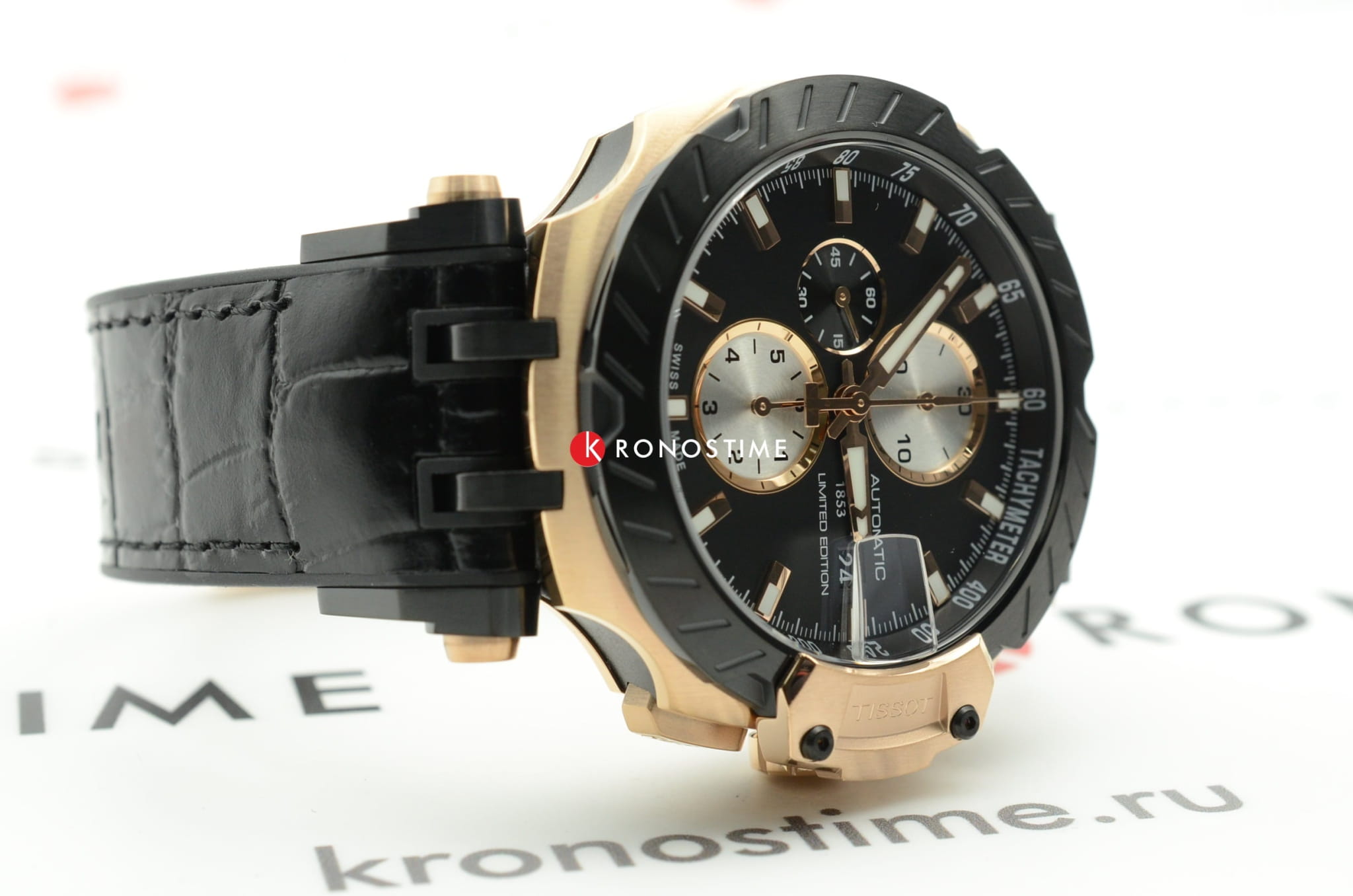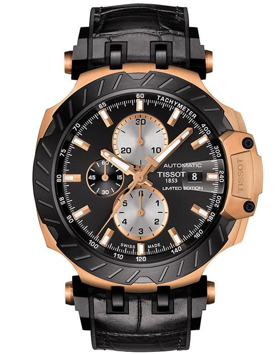 Автоматический швейцарский хронографХронографФункция позволяет измерять отрезки времени с особой точностью: часы, минуты, секунды. Верным признаком хронографа является наличие на циферблате 3 дополнительных окошек-счётчиков. из ограниченной серии T-Race Limited Edition поможет придать вашему облику эксклюзивные черты.
