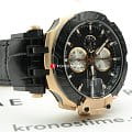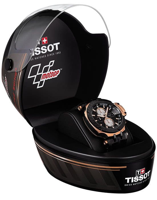 Наручные часы с чемпионским характером и стилистикой MotoGP выпускаются лимитированным тиражом, всего существует 3333 экземпляра. На нижней части задней крышки, выполненной в виде колеса, выгравирован индивидуальный номер. Модель дополнена механизмом C01.211 с запасом хода 45 часов. Корпус из хирургической стали с PVD-покрытиемPVDУльтратонкое покрытие наносится в технике вакуумного напыления, сочетает в себе нитрид титана особой прочности со слоем золота или оксида хрома. Несёт в себе декоративную или защитную функцию. цвета розового золота. Водостойкость до 10 бар. Кожаный ремешок с внутренней стороной из каучука. Антибликовое покрытие на поверхности сапфирового стекла. Оригинальная упаковка в виде мотошлема. Секундомер, тахиметрТахиметрРазмеченная шкала, располагается на ободке или безеле часов. Тахиметр позволяет рассчитать скорость на определённом участке пути, расстояние измеряется в километрах или милях., календарь. Габариты: 48,8 x 45 x 16,6 мм.