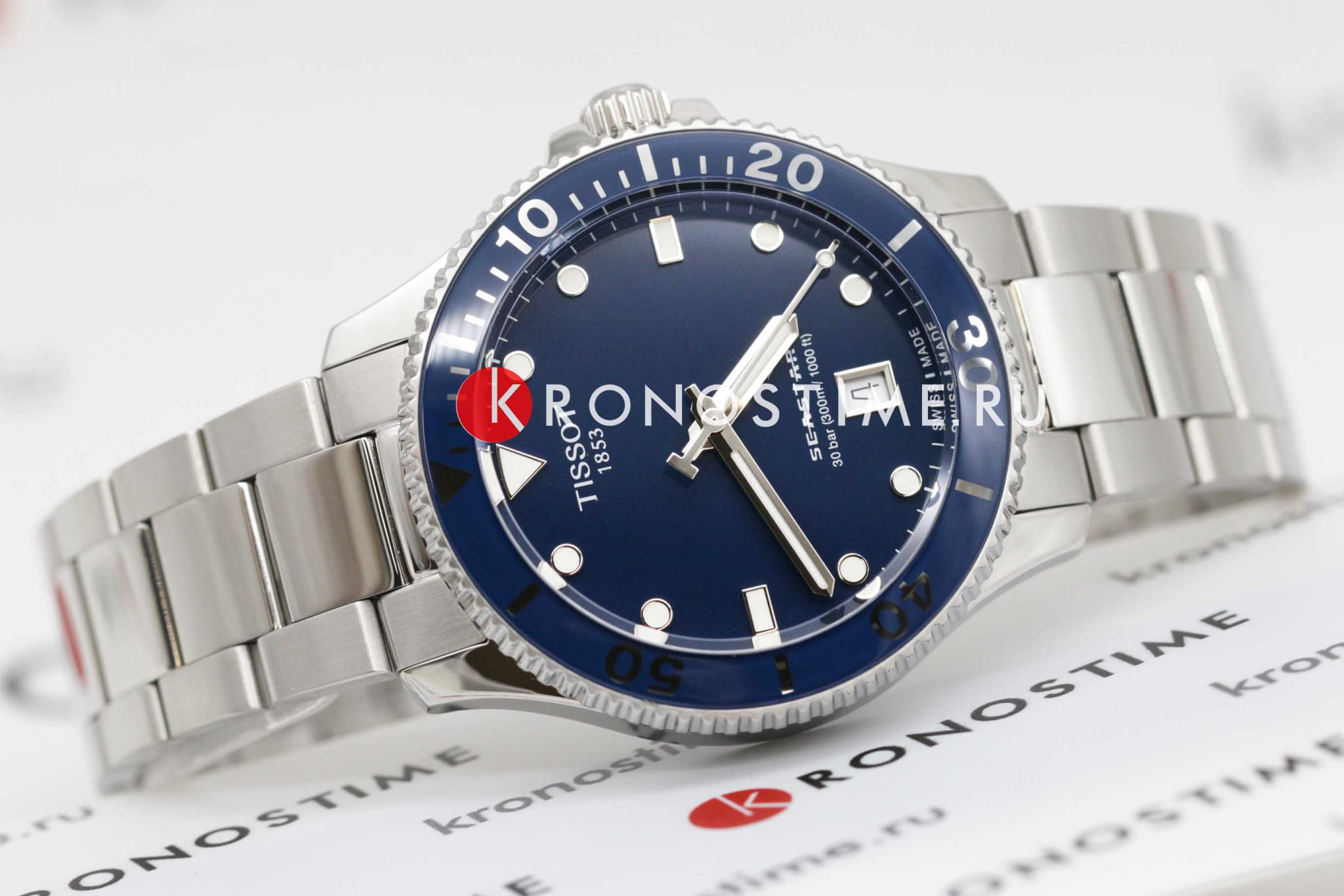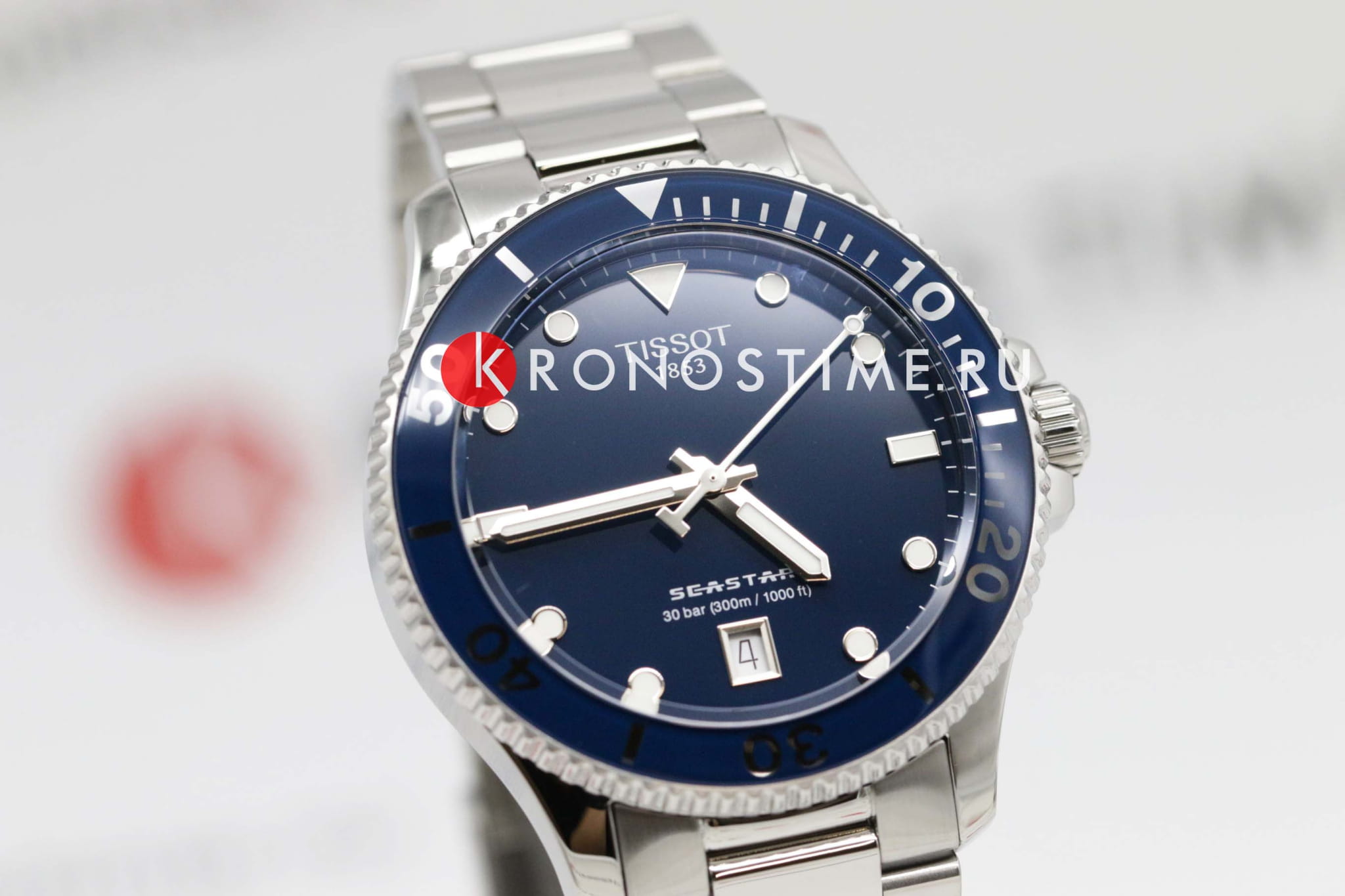 Мужские швейцарские часы с кварцевым механизмом Tissot Seastar 1000 T120.410.11.041.00, кварцевый механизм с высокой точностью. Сапфировое стеклоСапфировое стеклоПрочный и надёжный материал из кристалла сапфира синтетического происхождения, характеризующийся особой твёрдостью и устойчивостью к царапинам и повреждениям. устойчивое к появлению царапин, обладающее высокой прозрачностью. Класс водозащиты: 300 метров, позволит плавать, нырять и заниматься другими водными видами спорта. Вращающийся безельБезельВнешний ободок, закрепляющий стекло. В спортивных часах так называется поворотное кольцо с делениями на циферблате, выполняет роль таймера – замеряет отрезки времени на шкале. Неподвижный безель – элемент декора. Однонаправленно вращающийся безель на дайверских часах позволяет фиксировать моменты погружения и выныривания на поверхность.. Корпус часов изготовлен из нержавеющий стали.