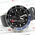 Наручные часы отличаются спортивным дизайном, прослеживается дайверская тематика, чему способствует и водонепроницаемость при давлении 30 бар на глубине 300 метров. Кварцевый механизм ETA G10.212. Сапфировое стекло с антибликовым покрытием. Завинчивающаяся заводная головка и задняя крышка. Люминесцентная подсветкаЛюминесцентное покрытиеПозволяет считывать показания времени в темноте. Производители наносят на стрелки, часовые индексы, безель или поверхность циферблата светонакопительный состав, дающий холодное свечение.. Черный каучуковый ремешок. Секундомер, хронографХронографФункция позволяет измерять отрезки времени с особой точностью: часы, минуты, секунды. Верным признаком хронографа является наличие на циферблате 3 дополнительных окошек-счётчиков., календарь. Габариты: 45 x 45 x 12,8 мм.