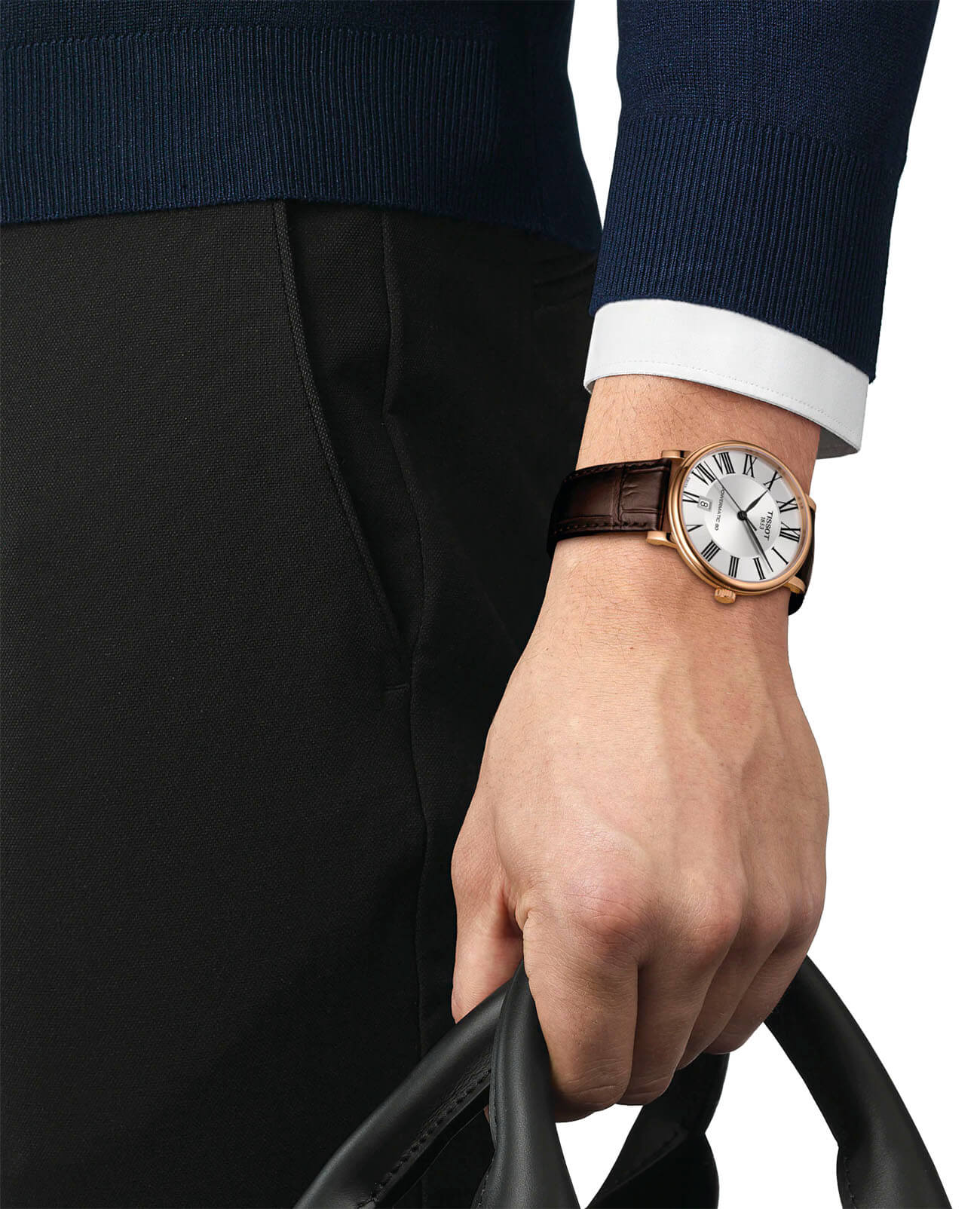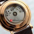 Аксессуар в сдержанной расцветке гармонично дополнит образ на деловую встречу, повседневную прогулку, светское мероприятие. Циферблат с римскими цифрами приобретает визуальную глубину благодаря оригинальному исполнению. Наручные часы с автоматической системой завода заводятся от движений руки носителя, в основе работы находится швейцарский механизм ETA Powermatic 80Powermatic 80Эксклюзивный калибр от швейцарской компании ETA с увеличенным запасом хода до 80 часов за счёт удлинённой заводной пружины. Характеризуется улучшенной системой спуска со сниженным трением. с увеличенным 80-часовым запасом хода. Блеск корпуса из нержавеющей стали 316L с PVD-покрытиемPVDУльтратонкое покрытие наносится в технике вакуумного напыления, сочетает в себе нитрид титана особой прочности со слоем золота или оксида хрома. Несёт в себе декоративную или защитную функцию. гармонирует с текстурированной поверхностью ремешка из натуральной кожи. Сапфировое стекло отличается 100% устойчивостью к царапинам. На позиции 6 часов расположено окошко текущей даты. Степень водонепроницаемости – WR 50. Габариты: 40 x 40 x 10,3 мм.