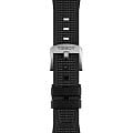 Корпус часов изготовлен из нержавеющей стали марки 316L серебристого цвета. Устойчивое к появлению царапин сапфировое стеклоСапфировое стеклоПрочный и надёжный материал из кристалла сапфира синтетического происхождения, характеризующийся особой твёрдостью и устойчивостью к царапинам и повреждениям. с антибликовым покрытием. Класс водозащиты: 100 метров, позволит плавать, нырять и заниматься другими водными видами спорта. Силиконовый ремешок черного цвета с классической застежкой.