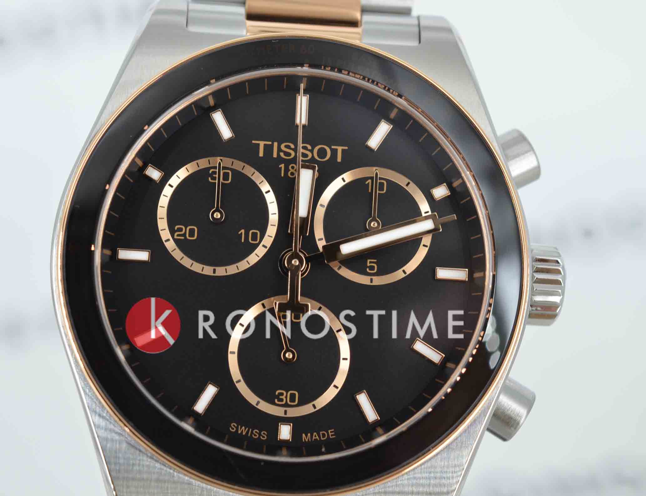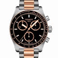 Tissot PR516 Quartz Chronograph T149.417.22.051.01 – элегантные мужские часы, вдохновлённые миром автоспорта 1960-х годов. Корпус диаметром 40 мм и толщиной 12,16 мм выполнен из нержавеющей стали 316L и безельБезельВнешний ободок, закрепляющий стекло. В спортивных часах так называется поворотное кольцо с делениями на циферблате, выполняет роль таймера – замеряет отрезки времени на шкале. Неподвижный безель – элемент декора. Однонаправленно вращающийся безель на дайверских часах позволяет фиксировать моменты погружения и выныривания на поверхность. с PVD-покрытиемPVDУльтратонкое покрытие наносится в технике вакуумного напыления, сочетает в себе нитрид титана особой прочности со слоем золота или оксида хрома. Несёт в себе декоративную или защитную функцию., придающим модели стильный и современный вид. Чёрный циферблат защищён сапфировым стекломСапфировое стеклоПрочный и надёжный материал из кристалла сапфира синтетического происхождения, характеризующийся особой твёрдостью и устойчивостью к царапинам и повреждениям. с антибликовым покрытиемАнтибликовое покрытиеСлой оксида металла в 0,13-0,3 микрон, благодаря которому стекло часов не бликует и не отражает свет. Антибликовое покрытие уменьшает отражение света в 10 раз, обеспечивая отличную читаемость показателей циферблата., обеспечивающим устойчивость к царапинам и отличную читаемость. Задняя крышка корпуса украшена гравировкой, подчёркивающей уникальность дизайна. Часы оснащены швейцарским кварцевым механизмом с функцией хронографаХронографФункция позволяет измерять отрезки времени с особой точностью: часы, минуты, секунды. Верным признаком хронографа является наличие на циферблате 3 дополнительных окошек-счётчиков., обеспечивающим высокую точность хода. Функциональность модели включает 30-минутный и 1/10-секундный счётчики, центральную 60-секундную стрелку хронографа, а также функции ADD и сплит-хронографаСплит-хронографИспользуется для измерения продолжительности нескольких временных отрезков, начинающихся одновременно, а заканчивающихся в разное время.. Индексы и стрелки покрыты люминесцентным покрытиемЛюминесцентное покрытиеПозволяет считывать показания времени в темноте. Производители наносят на стрелки, часовые индексы, безель или поверхность циферблата светонакопительный состав, дающий холодное свечение. Super-LumiNova®, обеспечивающим отличную видимость в условиях низкой освещённости. Браслет из нержавеющей стали с PVD-покрытиемPVDУльтратонкое покрытие наносится в технике вакуумного напыления, сочетает в себе нитрид титана особой прочности со слоем золота или оксида хрома. Несёт в себе декоративную или защитную функцию. розового золота оснащён системой быстрой замены и раскладной застёжкойРаскладная застёжкаТакой тип застёжки используется только на браслетах из металла. Она никогда не раскрывается полностью, происходит разделение на 2 и более частей. Раскладывающая застёжка снизит вероятность потери часов к минимуму. с предохранителем и кнопками, обеспечивающей комфортное ношение и надёжную фиксацию на запястье. Водозащита до 100 метров (10 бар) позволяет использовать часы во время плавания и других водных видов спорта.