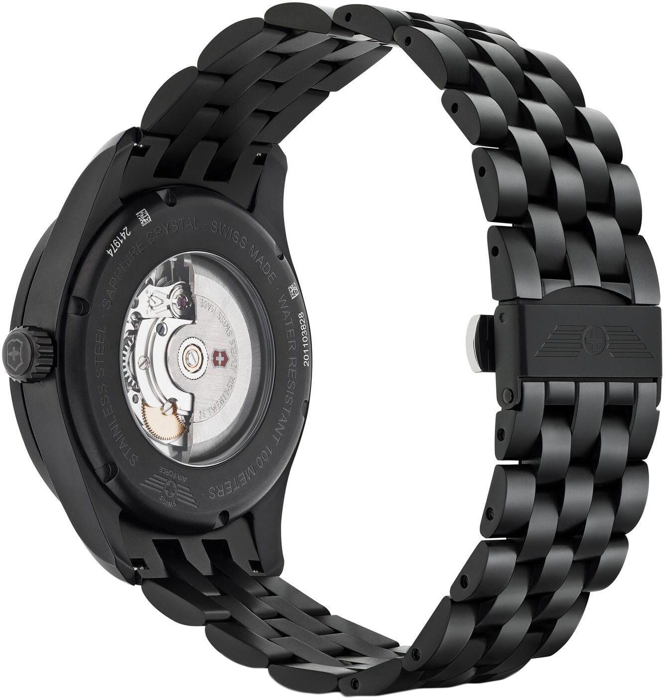 Мужские механические швейцарские часы с сапфировым стеклом Victorinox AirBoss 241974, механический механизм (автоматический калибр) с высокой точностью. Сапфировое стекло устойчивое к появлению царапин, обладающее высокой прозрачностью. Класс водозащиты: 100 метров, позволит плавать, нырять и заниматься другими водными видами спорта. Корпус часов изготовлен из стали, цвета.