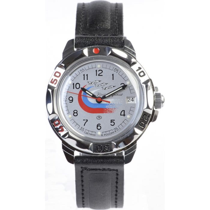 Легендарные Командирские часы с обновленным дизайном циферблата. Российские часы с историей. Командирские Классика. В механизме 17 камней. Запас хода 36 часов. Противоударное устройство оси баланса. Вращающийся безель. Завинчивающаяся заводная головка с защитой.