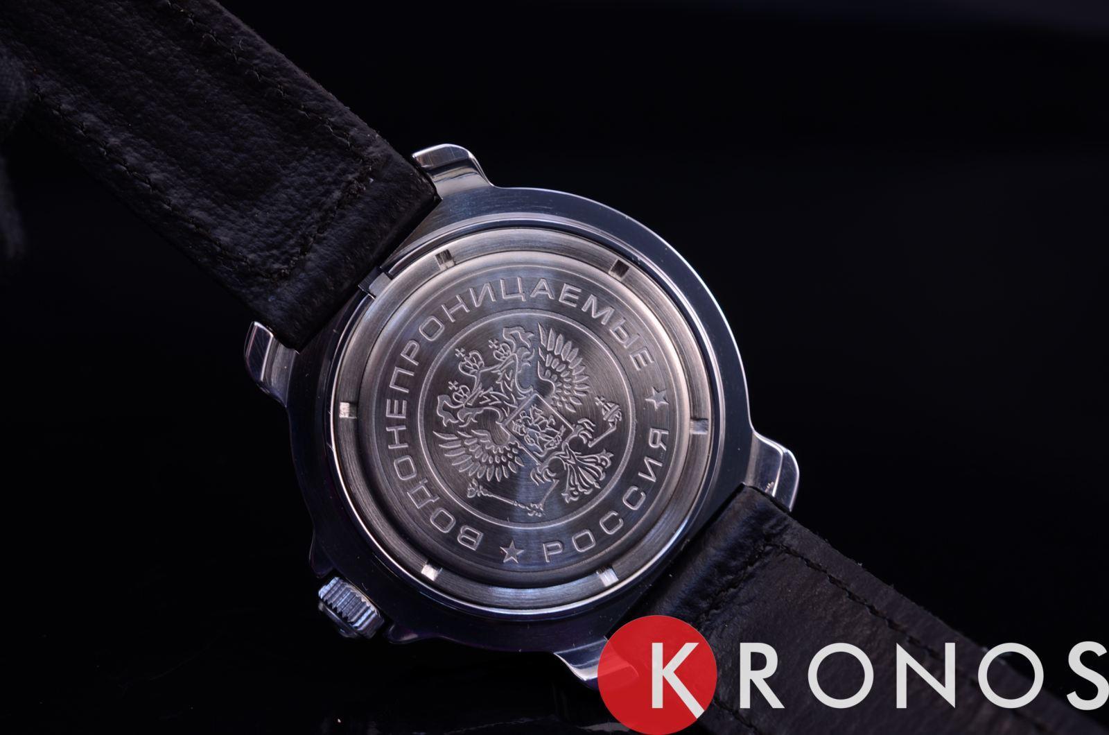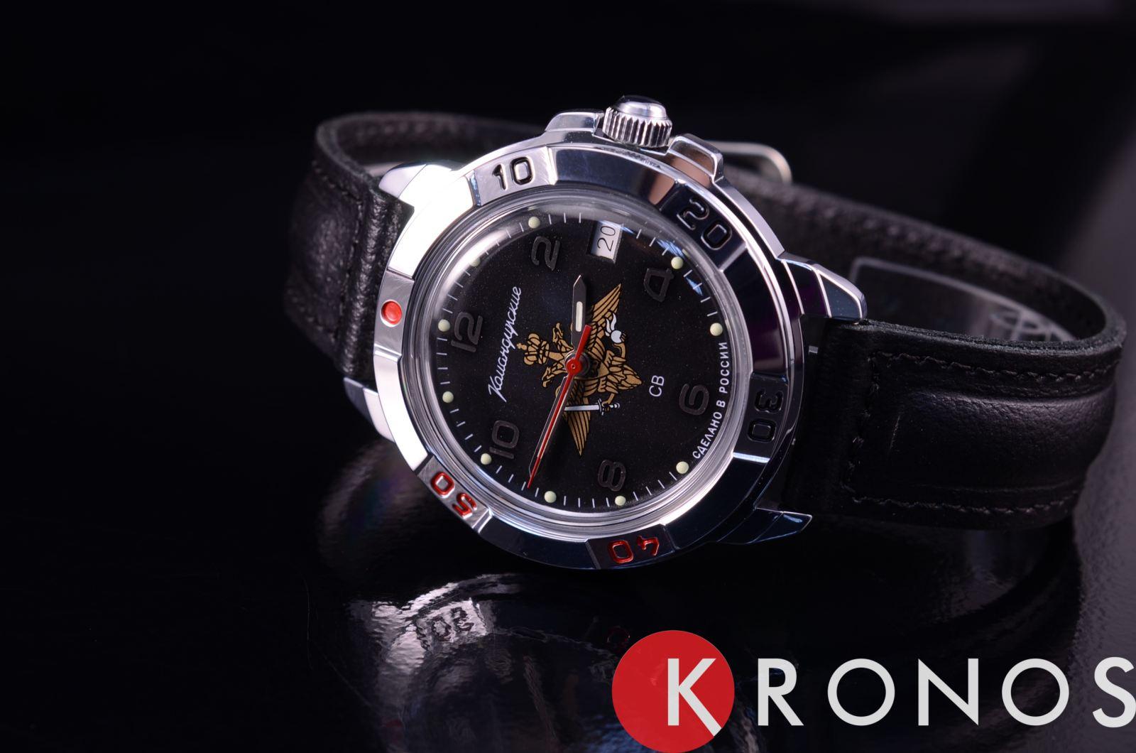 Российские механические часы. Корпус из высокопрочной стали с антикоррозийными свойствами. Ремешок из натуральной кожи черного цвета. Циферблат с символикой СВ. Водонепроницаемость часов составляет 3 ATM. Минеральное стекло, устойчивое к появлению царапин.