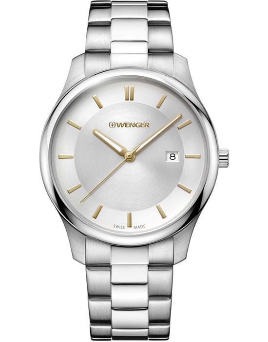 Мужские швейцарские часы с календарём Wenger 01.1441.105, кварцевый механизм с высокой точностью. Класс водозащиты: 30 метров, позволит защитить корпус от случайных брызг или капель дождя. Корпус часов изготовлен из стали, цвета.