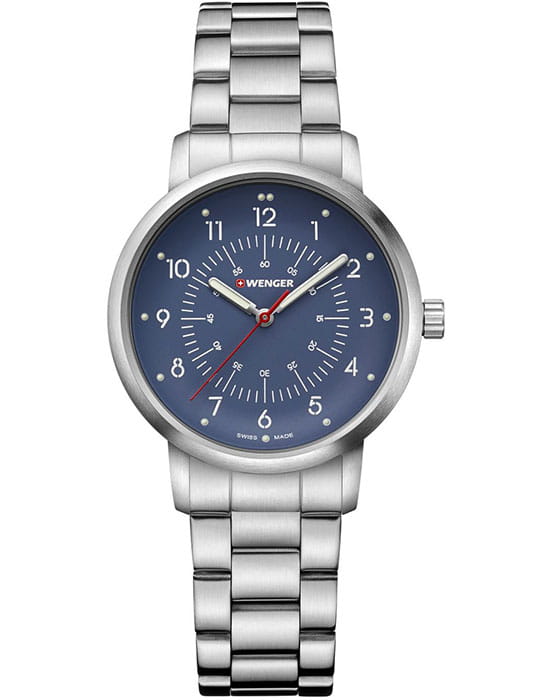 Женские швейцарские часы на стальном браслете Wenger 01.1621.115, кварцевый механизм с высокой точностью. Класс водозащиты: 100 метров, позволит плавать, нырять и заниматься другими водными видами спорта. Корпус часов изготовлен из стали, цвета.