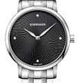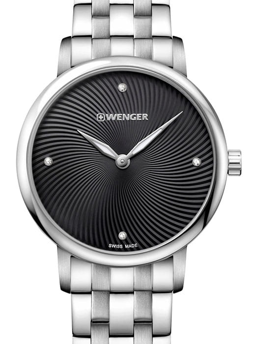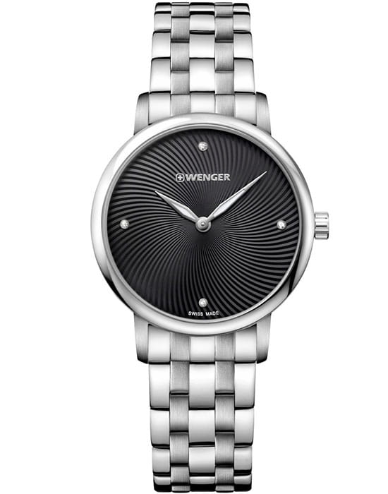 Женские швейцарские часы со стразами Wenger 01.1721.105, кварцевый механизм с высокой точностью. Класс водозащиты: 100 метров, позволит плавать, нырять и заниматься другими водными видами спорта. Корпус часов изготовлен из стали, цвета.